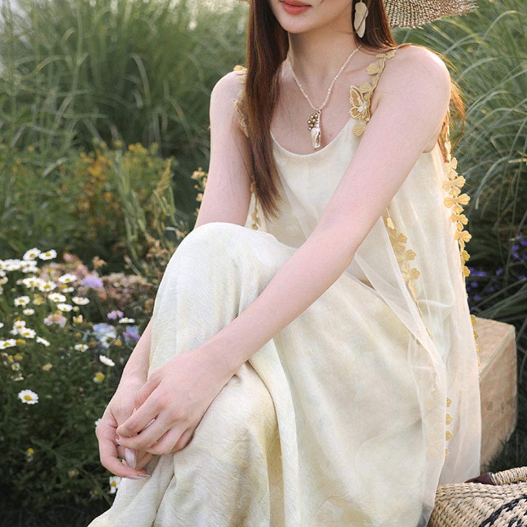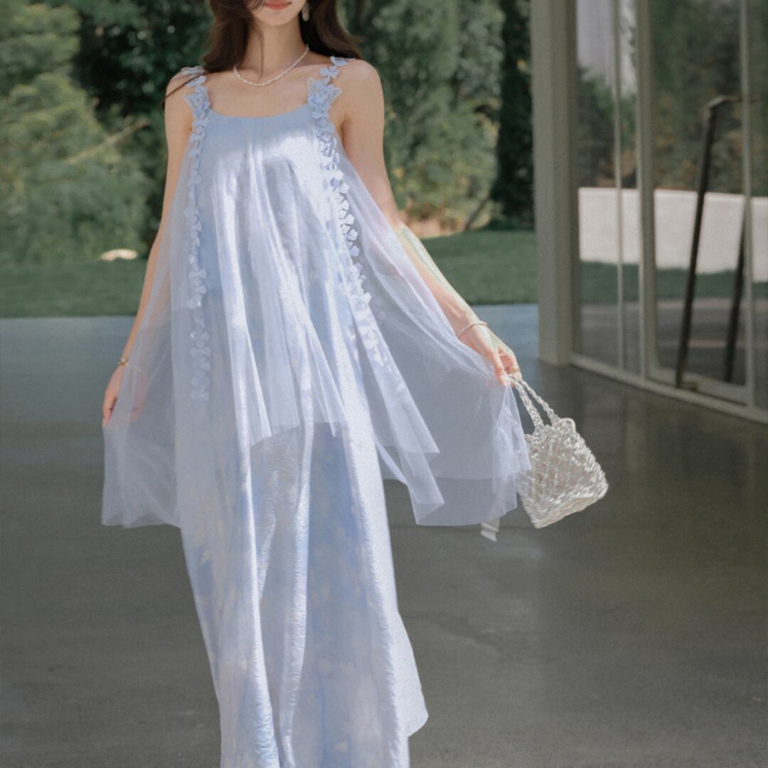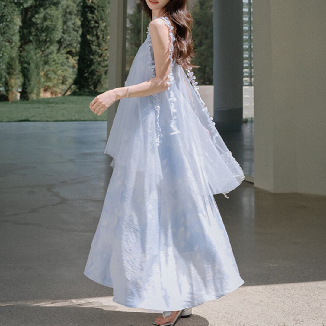 繊細なチュールと優雅なAラインシルエットが目を引く、フェミニンムード漂うロングワンピース。 柔らかな光沢感とふわりと広がる裾が、夏のリゾートや特別なお出かけに華やぎを添えます。 size : XS / S / M / L color : gold / blue XS 着丈116 バスト84 S 着丈120 バスト88 M 着丈122 バスト92 L 着丈124 バスト96 ◾︎ 配送期間 10日〜21日程お時間を頂戴しております。(休業日を除く) ◾︎ 公式LINEお友達追加で¥500 OFFクーポンプレゼント https://lin.ee/6wh2f5z ◾︎ 必ず下記ページの「ご利用ガイド」をお読みの上 ご購入をお願いいたします。 https://babybelle.theshop.jp/blog/2023/11/01/011701