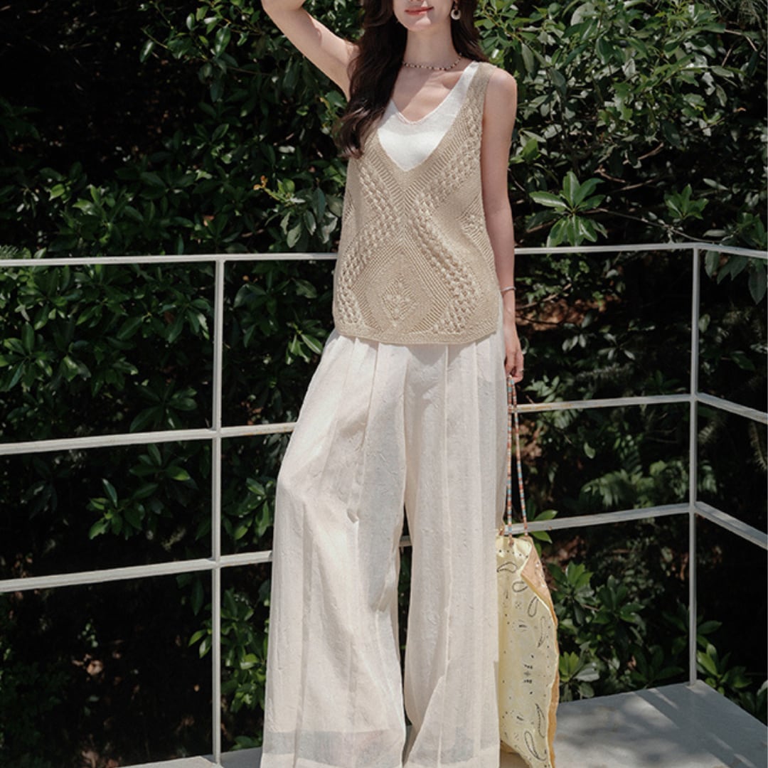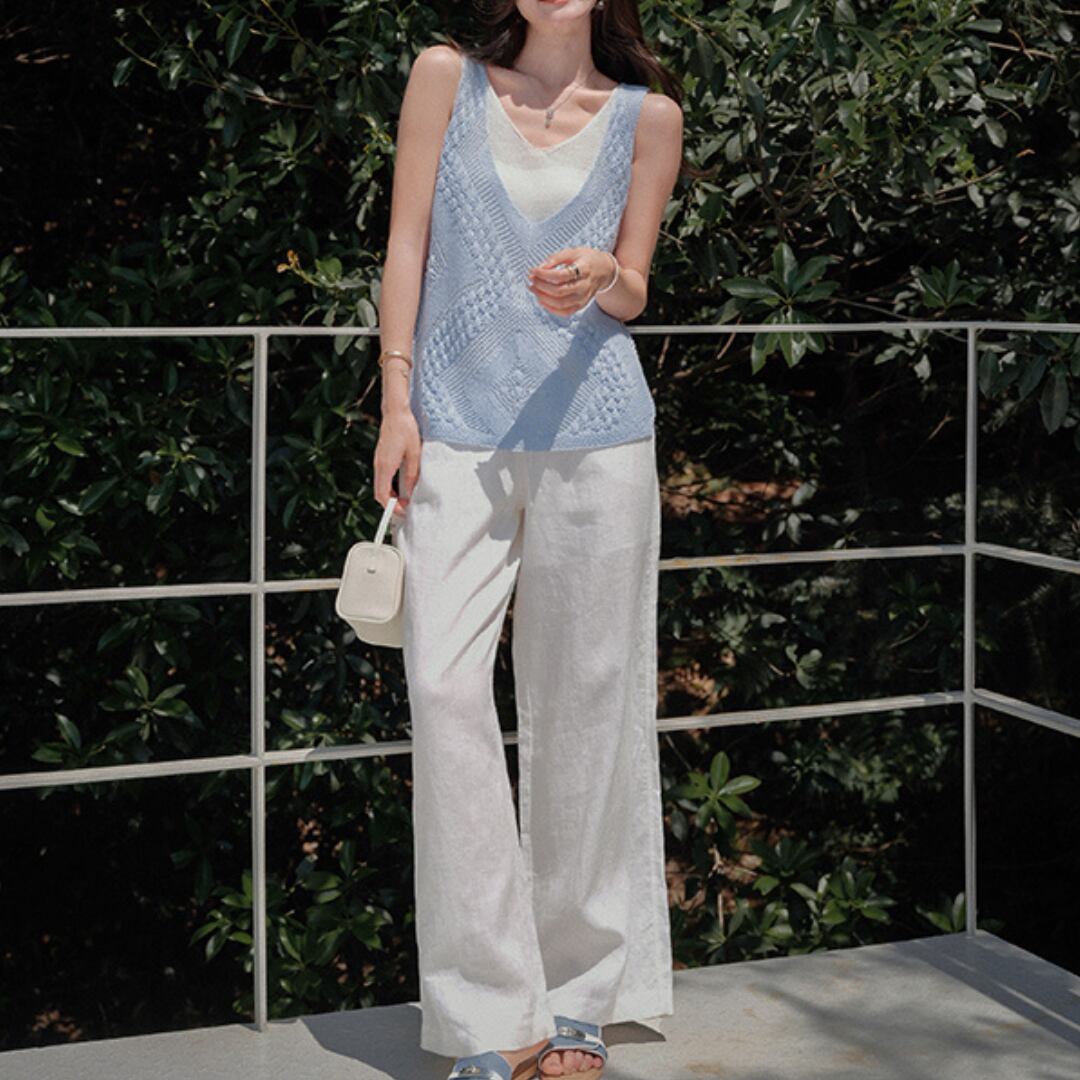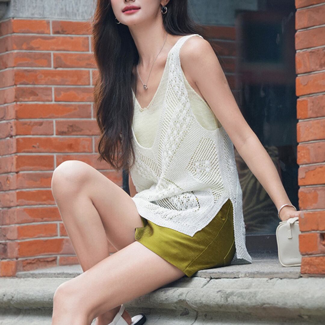 繊細な透かし編みが涼しげな印象を与える、ナチュラルムードのニットタンクトップ。 インナーとのレイヤードが楽しめ、デニムやワイドパンツと合わせて軽やかな夏コーデにぴったりです。 size : S / M color : white / blue / beige S 着丈59 肩幅29 バスト88 M 着丈60 肩幅30 バスト92 ◾︎ 配送期間 10日〜21日程お時間を頂戴しております。(休業日を除く) ◾︎ 公式LINEお友達追加で¥500 OFFクーポンプレゼント https://lin.ee/6wh2f5z ◾︎ 必ず下記ページの「ご利用ガイド」をお読みの上 ご購入をお願いいたします。 https://babybelle.theshop.jp/blog/2023/11/01/011701