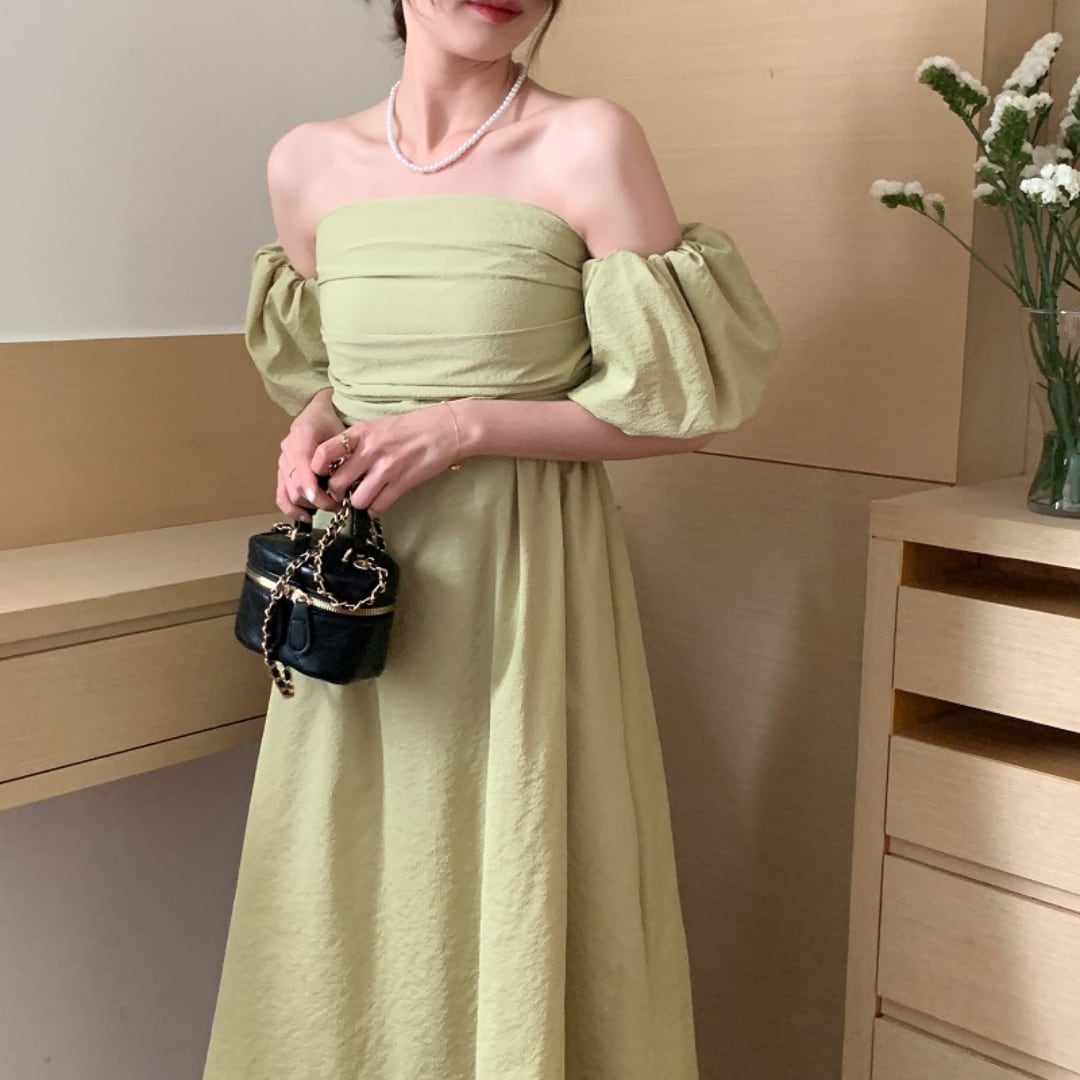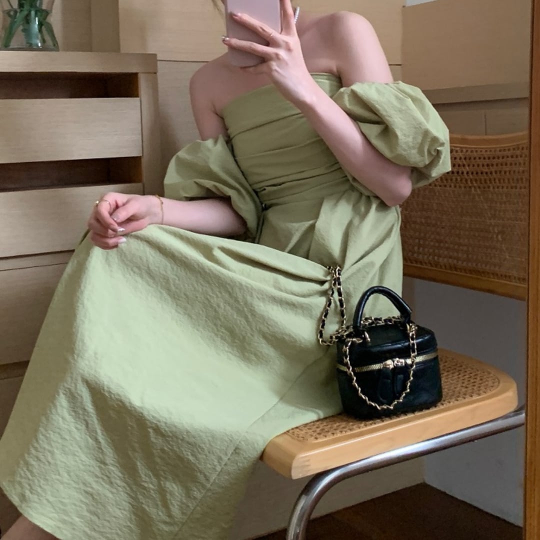 ギャザーを効かせたオフショルダーデザインとボリューム袖が女性らしさを引き立てる一着。 デートやお呼ばれコーデはもちろん、華やかに魅せたい日にもおすすめのワンピースです。 size : one size color : white / black / green ワンサイズ 着丈94 バスト60 袖丈19 ◾︎ 配送期間 10日〜21日程お時間を頂戴しております。(休業日を除く) ◾︎ 公式LINEお友達追加で¥500 OFFクーポンプレゼント https://lin.ee/6wh2f5z ◾︎ 必ず下記ページの「ご利用ガイド」をお読みの上 ご購入をお願いいたします。 https://babybelle.theshop.jp/blog/2023/11/01/011701