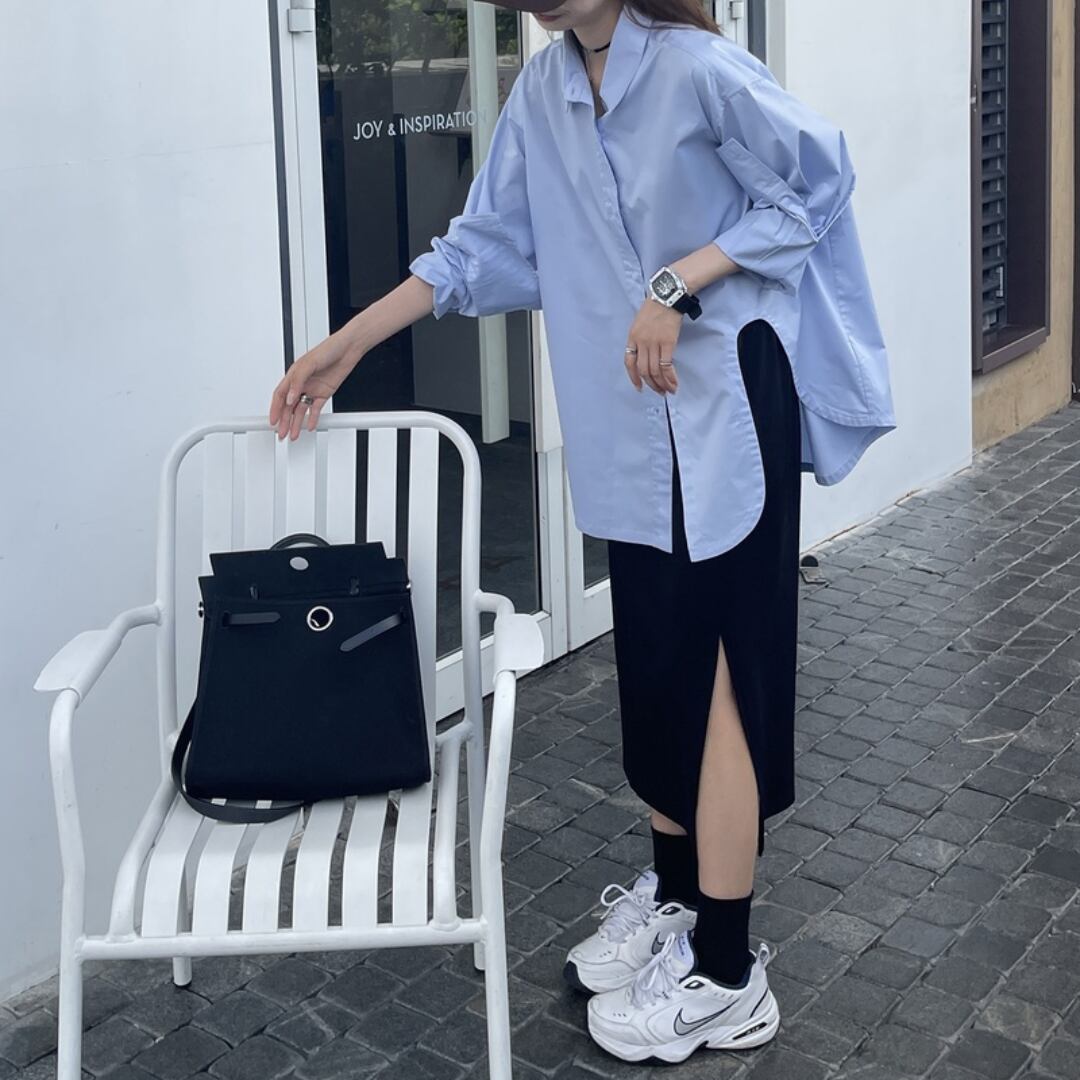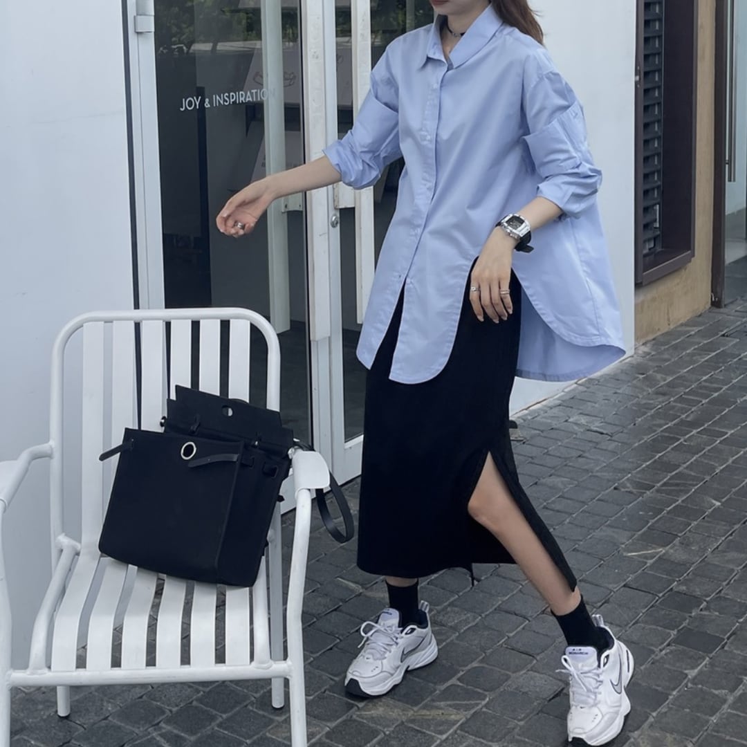 ゆったりシルエットのロングシャツとスリット入りスカートのセットアップは、抜け感とモード感を兼ね備えた一着。 スニーカー合わせでカジュアルにも、ローファーやパンプスで綺麗めにも着こなせる万能アイテムです。 size : S / M / L / XL / XXL color : blue / white ◾︎ 配送期間 10日〜21日程お時間を頂戴しております。(休業日を除く) ◾︎ 公式LINEお友達追加で¥500 OFFクーポンプレゼント https://lin.ee/6wh2f5z ◾︎ 必ず下記ページの「ご利用ガイド」をお読みの上 ご購入をお願いいたします。 https://babybelle.theshop.jp/blog/2023/11/01/011701