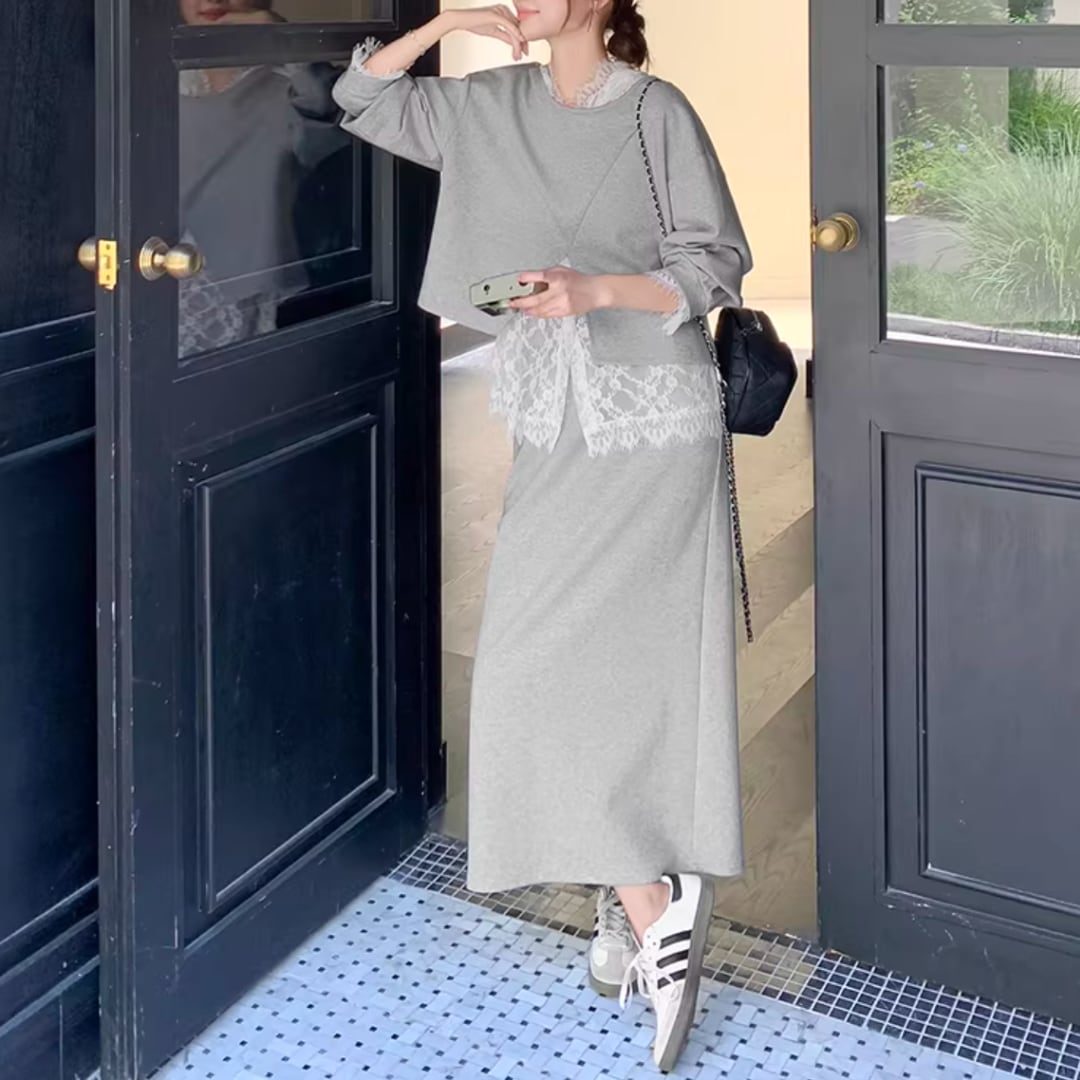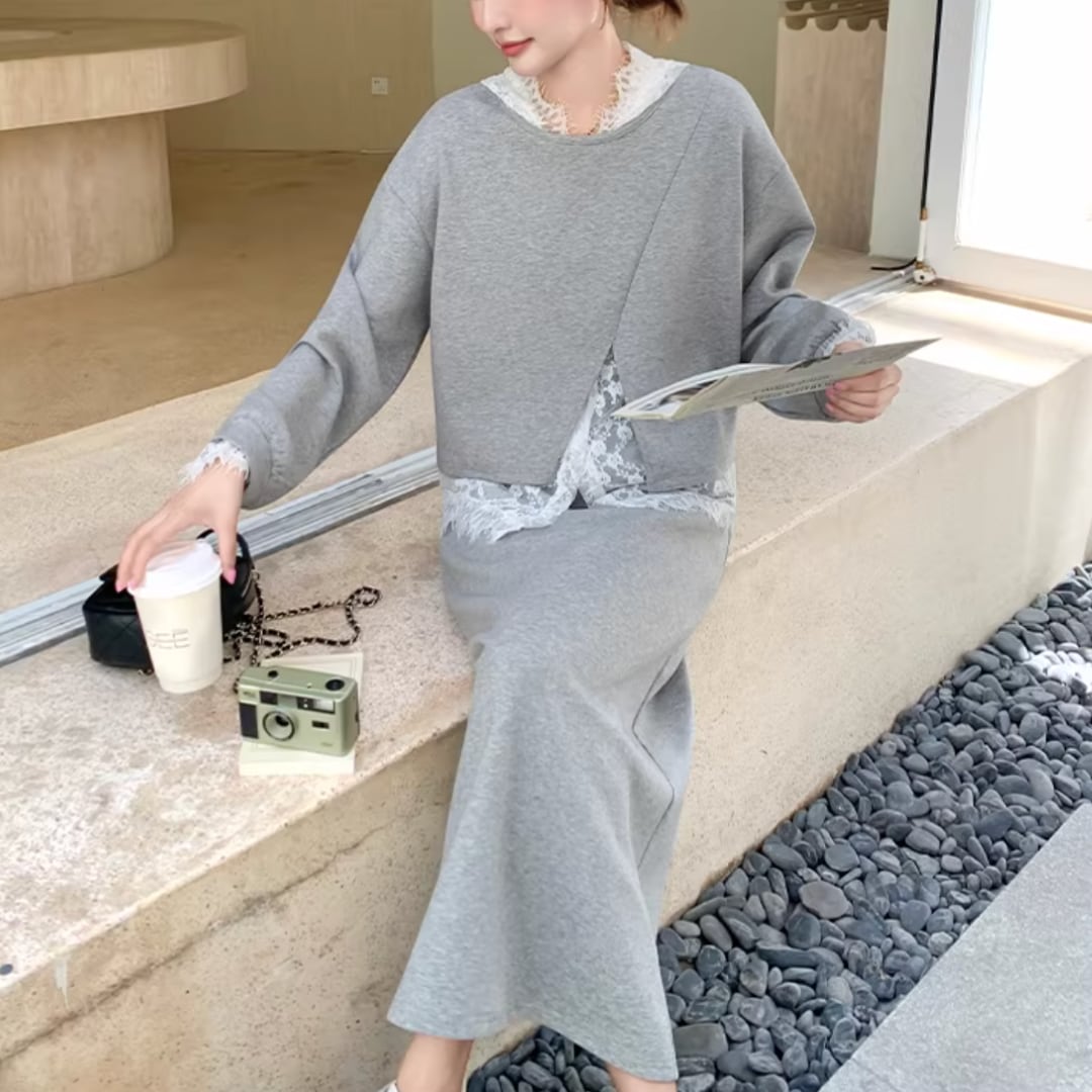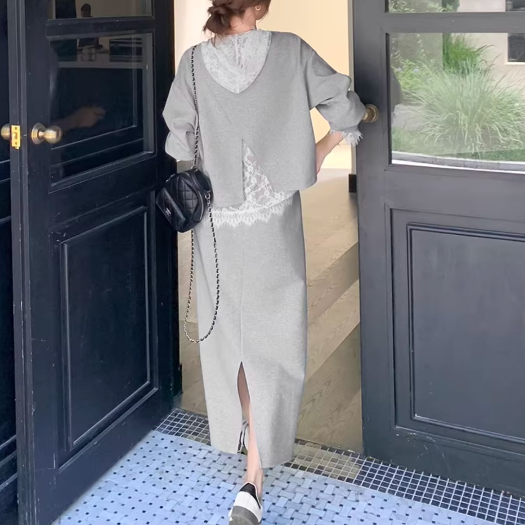 ■商品説明 繊細なレースを裾にあしらったトップスと、なめらかに広がるロングスカートのセットアップ。 柔らかなグレーのワントーンに、軽やかなレースの透け感が加わり、控えめながらも女性らしい華やぎを添えます。 フード部分にも同素材のレースを重ねることで、カジュアルな印象を和らげ、上品な佇まいへと昇華。 スカートは自然に広がるシルエットで、歩くたびに優雅な揺れを描きます。 日常の装いとしてはもちろん、静かな時間を大切にしたいお出かけの日にも寄り添う一着。 甘さを抑えたデザインが、大人の女性の美しさを穏やかに引き立てます。 ■素材 表地:その他100% 裏地:なし ■カラー グレー ■サイズ 【トップス】 S:着丈49cm / 胸囲78cm / 肩幅39cm M:着丈50cm / 胸囲82cm / 肩幅40cm L:着丈51cm / 胸囲86cm / 肩幅41cm XL:着丈52cm / 胸囲90cm / 肩幅42cm 【スカート】 S:着丈83cm / ウエスト62cm M:着丈84cm / ウエスト66cm L:着丈85cm / ウエスト70cm XL:着丈86cm / ウエスト74cm ※平置き採寸のため 1〜3cm の誤差があります。 ーーーーーーーーーーーーーーーーーーーーーーーーーーー 【注意事項】 ▪当店ではお求めやすい価格で提供することを心がけ、経費削減として海外倉庫を利用しています。 そのため、お取り寄せ商品は14〜30営業日前後いただく場合がございます。 ▪︎送料は北海道・沖縄・離島以外1000円、北海道・沖縄・離島は1500円頂戴しております。 ▪︎お買い上げ10,000円以上の場合、送料は無料です。 ▪︎こちらは海外製造の商品です。日本基準ではございませんので、作りがあまい場合がございます。 ▪︎お手持ちのPCやスマートフォンの画面により商品の色に若干の差がございます。 ▪︎イメージの違いやサイズ交換等、お客様の都合による交換、返品の対応はできかねます。 詳細は『ご購入前に必ずお読みください』を確認のうえご購入をお願いします。 https://www.amoratokyo.jp/blog/2023/11/01/011701