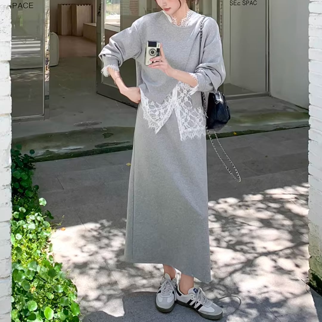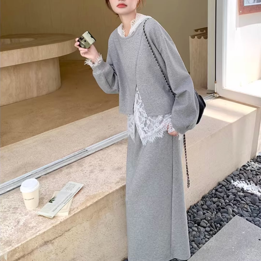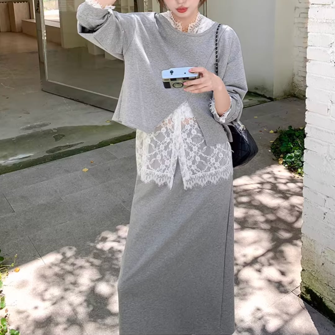 ■商品説明 繊細なレースを裾にあしらったトップスと、なめらかに広がるロングスカートのセットアップ。 柔らかなグレーのワントーンに、軽やかなレースの透け感が加わり、控えめながらも女性らしい華やぎを添えます。 フード部分にも同素材のレースを重ねることで、カジュアルな印象を和らげ、上品な佇まいへと昇華。 スカートは自然に広がるシルエットで、歩くたびに優雅な揺れを描きます。 日常の装いとしてはもちろん、静かな時間を大切にしたいお出かけの日にも寄り添う一着。 甘さを抑えたデザインが、大人の女性の美しさを穏やかに引き立てます。 ■素材 表地:その他100% 裏地:なし ■カラー グレー ■サイズ 【トップス】 S:着丈49cm / 胸囲78cm / 肩幅39cm M:着丈50cm / 胸囲82cm / 肩幅40cm L:着丈51cm / 胸囲86cm / 肩幅41cm XL:着丈52cm / 胸囲90cm / 肩幅42cm 【スカート】 S:着丈83cm / ウエスト62cm M:着丈84cm / ウエスト66cm L:着丈85cm / ウエスト70cm XL:着丈86cm / ウエスト74cm ※平置き採寸のため 1〜3cm の誤差があります。 ーーーーーーーーーーーーーーーーーーーーーーーーーーー 【注意事項】 ▪当店ではお求めやすい価格で提供することを心がけ、経費削減として海外倉庫を利用しています。 そのため、お取り寄せ商品は14〜30営業日前後いただく場合がございます。 ▪︎送料は北海道・沖縄・離島以外1000円、北海道・沖縄・離島は1500円頂戴しております。 ▪︎お買い上げ10,000円以上の場合、送料は無料です。 ▪︎こちらは海外製造の商品です。日本基準ではございませんので、作りがあまい場合がございます。 ▪︎お手持ちのPCやスマートフォンの画面により商品の色に若干の差がございます。 ▪︎イメージの違いやサイズ交換等、お客様の都合による交換、返品の対応はできかねます。 詳細は『ご購入前に必ずお読みください』を確認のうえご購入をお願いします。 https://www.amoratokyo.jp/blog/2023/11/01/011701