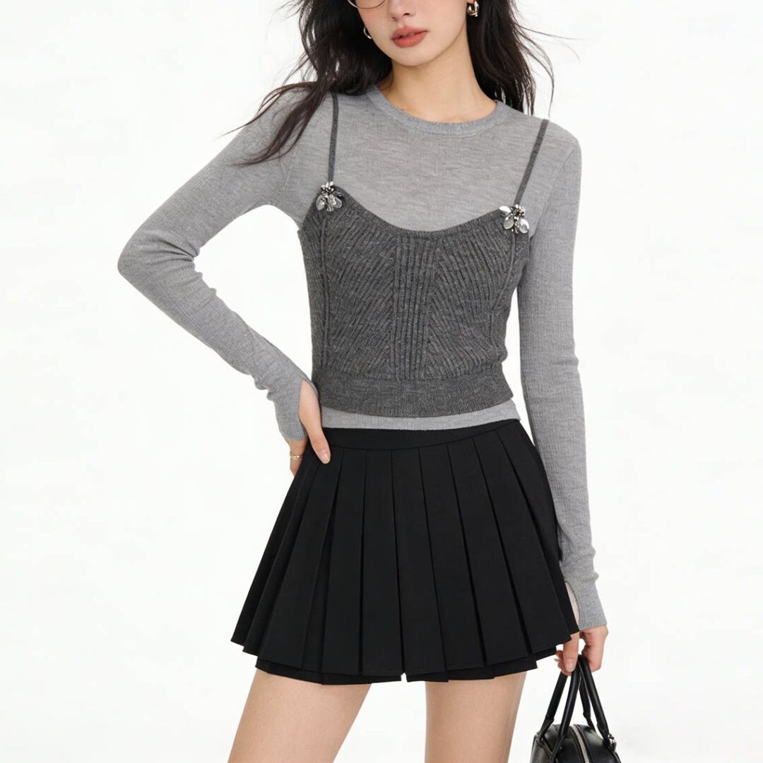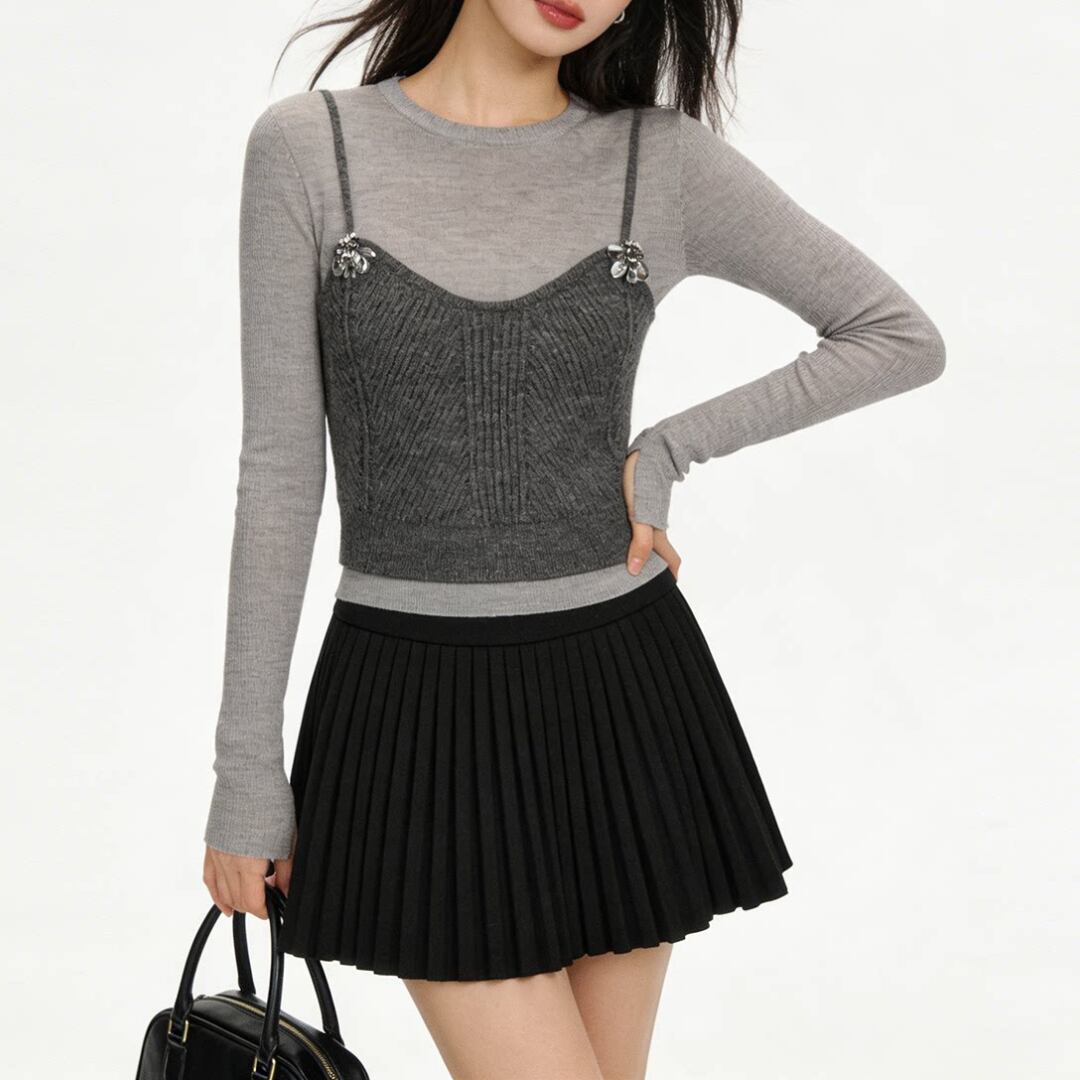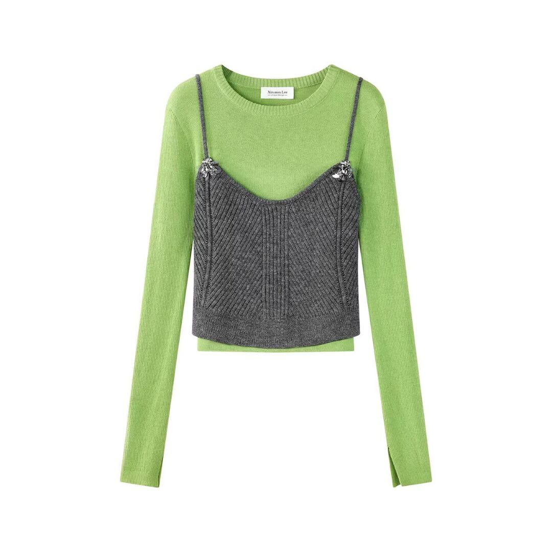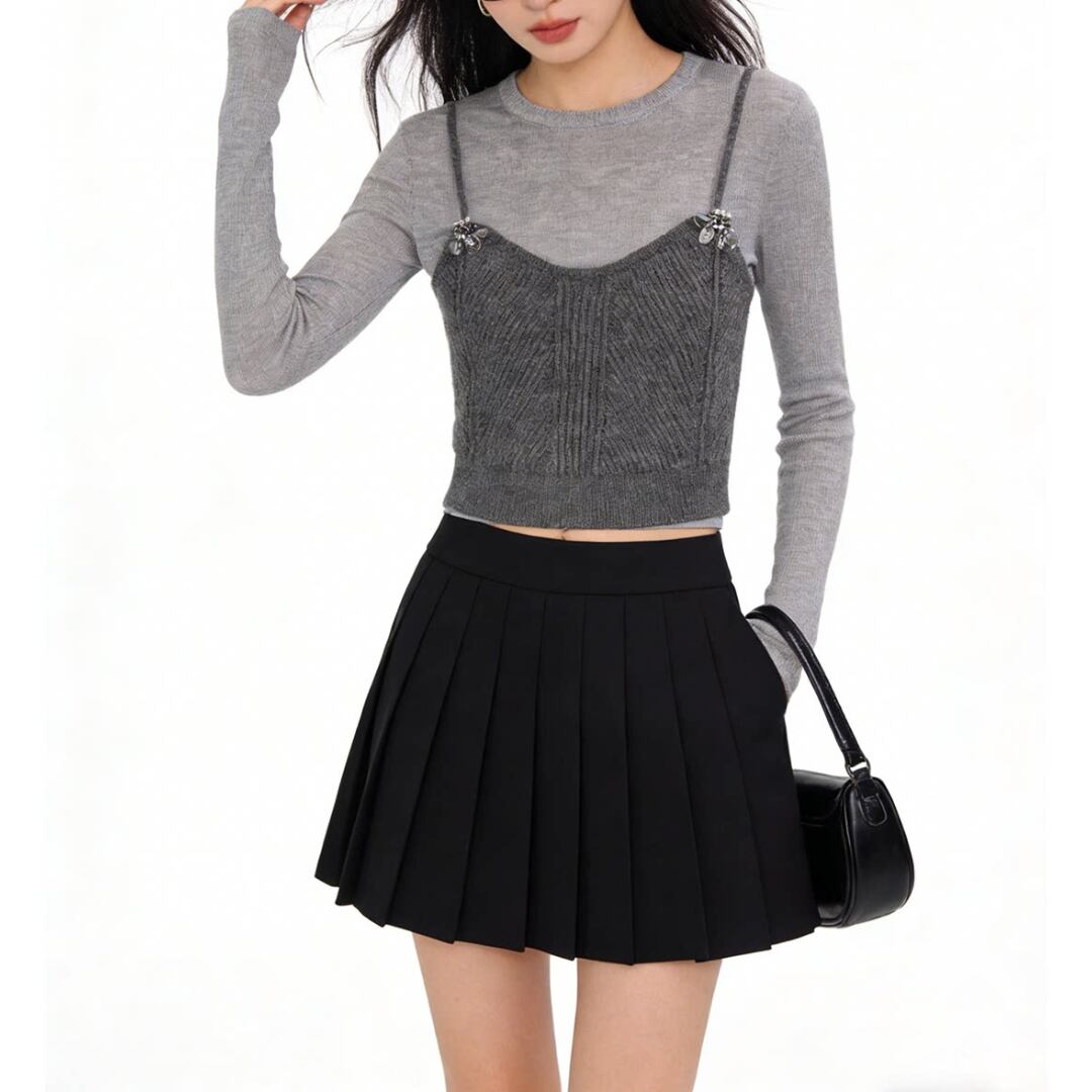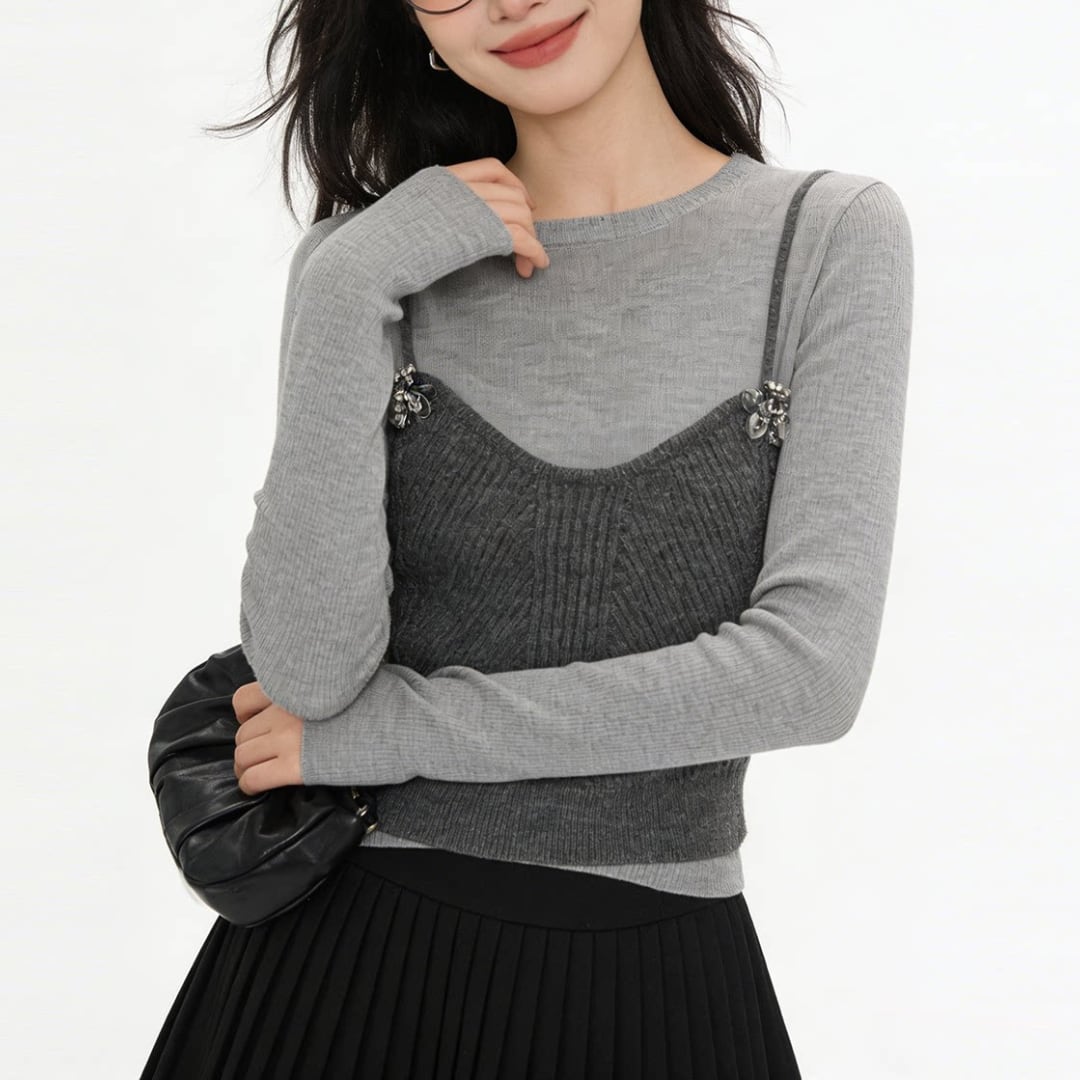 ■商品説明 キャミソールを重ねたようなレイヤードデザインが印象的なニットトップス。シンプルな中にさりげない立体感を生み出し、洗練された大人のカジュアルスタイルを演出します。 細やかなリブ編みのニットに、重ね着風のビスチェデザインを組み合わせた一枚。コンパクトなシルエットと長袖のバランスが美しく、女性らしい上品なラインを引き立てます。 身体にほどよく沿うシルエットがすっきりとした印象を与え、自然なスタイルアップを叶えるデザイン。ショート丈がボトムとのバランスを整え、洗練されたコーディネートに仕上がります。 デニムやスカートとの相性も良く、デイリーからお出かけまで幅広く活躍。シンプルながらも着こなしに奥行きを与える、大人のワードローブに取り入れたい一着です。 ■素材 表地:その他100% 裏地:なし ■カラー グレー ブルー グリーン ■サイズ S:着丈47cm / 肩幅33cm / 胸囲66cm / 袖丈64cm M:着丈48cm / 肩幅34cm / 胸囲70cm / 袖丈65cm L:着丈49cm / 肩幅35cm / 胸囲74cm / 袖丈66cm ※平置き採寸のため 1〜3cm の誤差があります。 ーーーーーーーーーーーーーーーーーーーーーーーーーーー 【注意事項】 ▪当店ではお求めやすい価格で提供することを心がけ、経費削減として海外倉庫を利用しています。 そのため、お取り寄せ商品は14〜30営業日前後いただく場合がございます。 ▪︎送料は北海道・沖縄・離島以外1000円、北海道・沖縄・離島は1500円頂戴しております。 ▪︎お買い上げ10,000円以上の場合、送料は無料です。 ▪︎こちらは海外製造の商品です。日本基準ではございませんので、作りがあまい場合がございます。 ▪︎お手持ちのPCやスマートフォンの画面により商品の色に若干の差がございます。 ▪︎イメージの違いやサイズ交換等、お客様の都合による交換、返品の対応はできかねます。 詳細は『ご購入前に必ずお読みください』を確認のうえご購入をお願いします。 https://www.amoratokyo.jp/blog/2023/11/01/011701