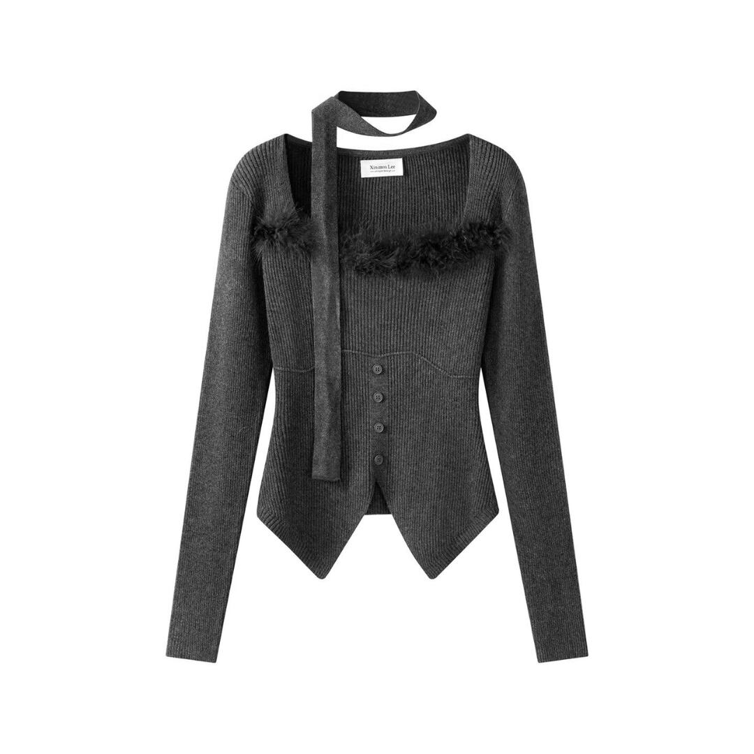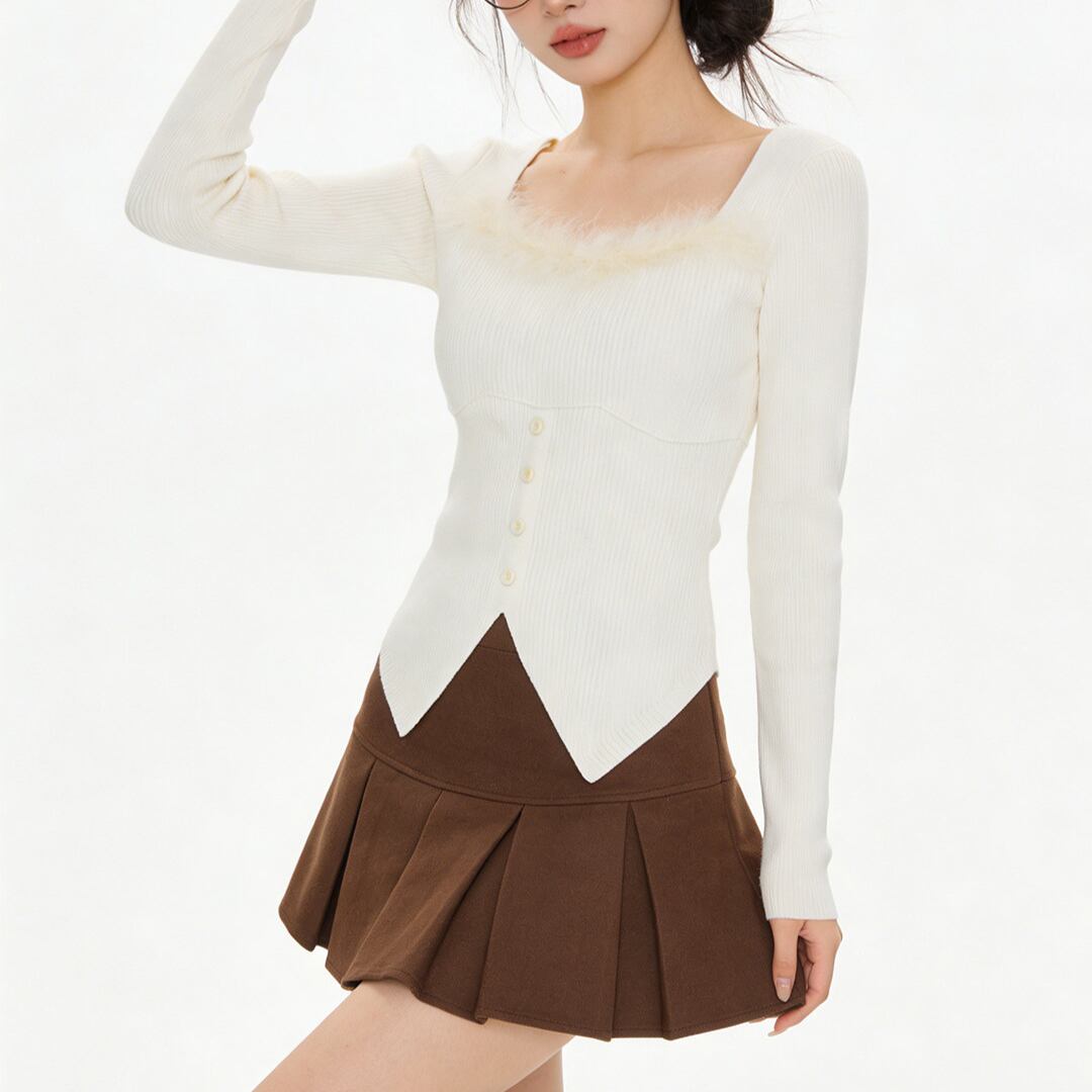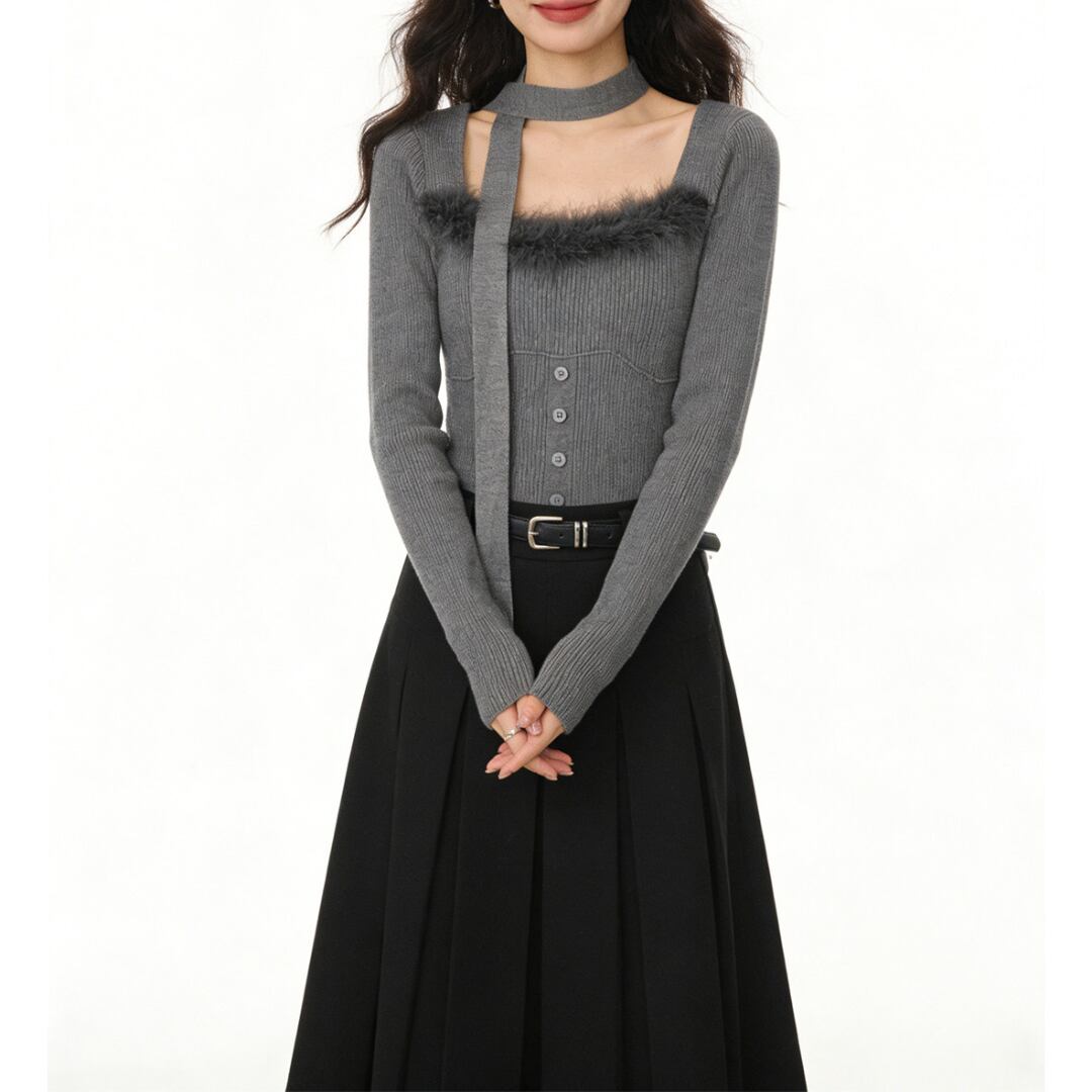 ■商品説明 デコルテを美しく引き立てるスクエアネックが印象的な、洗練されたニットトップス。すっきりとしたシルエットが、大人の女性らしい上品な佇まいを演出します。 ネックラインにあしらわれた繊細なフェザーディテールが、シンプルな中にも華やかなアクセントをプラス。フロントのボタンデザインとリブ編みの立体感が、女性らしい柔らかな表情を引き立てます。 身体に程よくフィットするシルエットが、ウエストラインを美しく見せながらスタイルアップを実現。コンパクトな丈感で、ボトムスとのバランスも取りやすい一着です。 デイリーコーデからカフェスタイル、ちょっとしたお出かけまで幅広く活躍。上品さと女性らしさを兼ね備えた、大人のワードローブに寄り添うニットトップスです。 ■素材 表地:その他 裏地:なし ■カラー アプリコット ブラック グレー ■サイズ S:着丈43cm / 肩幅33cm / 胸囲76cm / 袖丈54cm M:着丈44cm / 肩幅34cm / 胸囲78cm / 袖丈55cm ※平置き採寸のため 1〜3cm の誤差があります。 ーーーーーーーーーーーーーーーーーーーーーーーーーーー 【注意事項】 ▪当店ではお求めやすい価格で提供することを心がけ、経費削減として海外倉庫を利用しています。 そのため、お取り寄せ商品は14〜30営業日前後いただく場合がございます。 ▪︎送料は北海道・沖縄・離島以外1000円、北海道・沖縄・離島は1500円頂戴しております。 ▪︎お買い上げ10,000円以上の場合、送料は無料です。 ▪︎こちらは海外製造の商品です。日本基準ではございませんので、作りがあまい場合がございます。 ▪︎お手持ちのPCやスマートフォンの画面により商品の色に若干の差がございます。 ▪︎イメージの違いやサイズ交換等、お客様の都合による交換、返品の対応はできかねます。 詳細は『ご購入前に必ずお読みください』を確認のうえご購入をお願いします。 https://www.amoratokyo.jp/blog/2023/11/01/011701