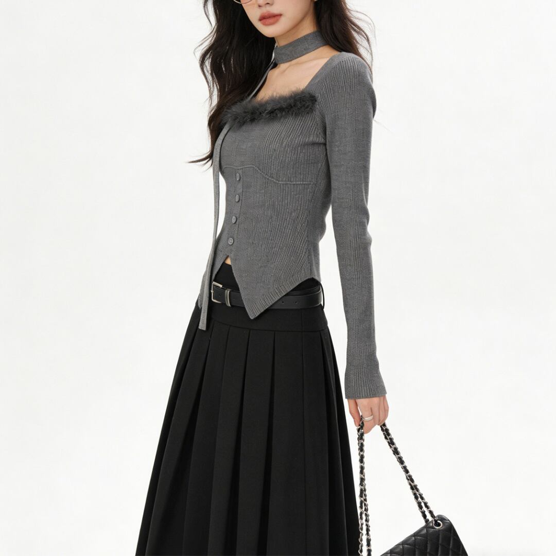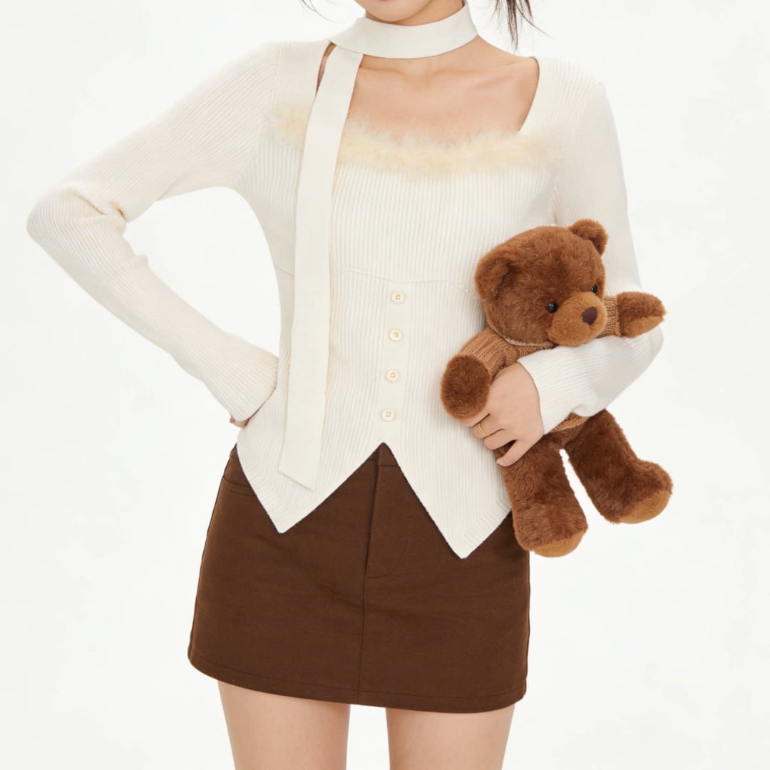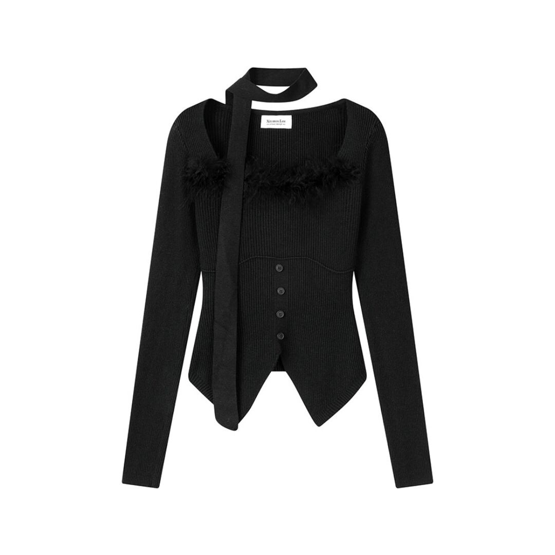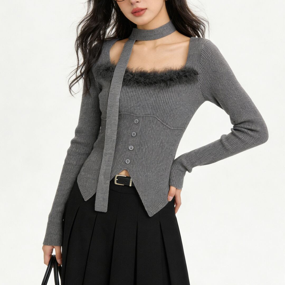 ■商品説明 デコルテを美しく引き立てるスクエアネックが印象的な、洗練されたニットトップス。すっきりとしたシルエットが、大人の女性らしい上品な佇まいを演出します。 ネックラインにあしらわれた繊細なフェザーディテールが、シンプルな中にも華やかなアクセントをプラス。フロントのボタンデザインとリブ編みの立体感が、女性らしい柔らかな表情を引き立てます。 身体に程よくフィットするシルエットが、ウエストラインを美しく見せながらスタイルアップを実現。コンパクトな丈感で、ボトムスとのバランスも取りやすい一着です。 デイリーコーデからカフェスタイル、ちょっとしたお出かけまで幅広く活躍。上品さと女性らしさを兼ね備えた、大人のワードローブに寄り添うニットトップスです。 ■素材 表地:その他 裏地:なし ■カラー アプリコット ブラック グレー ■サイズ S:着丈43cm / 肩幅33cm / 胸囲76cm / 袖丈54cm M:着丈44cm / 肩幅34cm / 胸囲78cm / 袖丈55cm ※平置き採寸のため 1〜3cm の誤差があります。 ーーーーーーーーーーーーーーーーーーーーーーーーーーー 【注意事項】 ▪当店ではお求めやすい価格で提供することを心がけ、経費削減として海外倉庫を利用しています。 そのため、お取り寄せ商品は14〜30営業日前後いただく場合がございます。 ▪︎送料は北海道・沖縄・離島以外1000円、北海道・沖縄・離島は1500円頂戴しております。 ▪︎お買い上げ10,000円以上の場合、送料は無料です。 ▪︎こちらは海外製造の商品です。日本基準ではございませんので、作りがあまい場合がございます。 ▪︎お手持ちのPCやスマートフォンの画面により商品の色に若干の差がございます。 ▪︎イメージの違いやサイズ交換等、お客様の都合による交換、返品の対応はできかねます。 詳細は『ご購入前に必ずお読みください』を確認のうえご購入をお願いします。 https://www.amoratokyo.jp/blog/2023/11/01/011701
