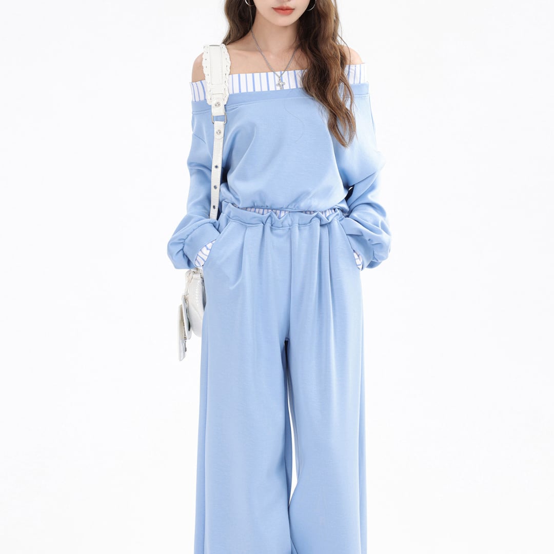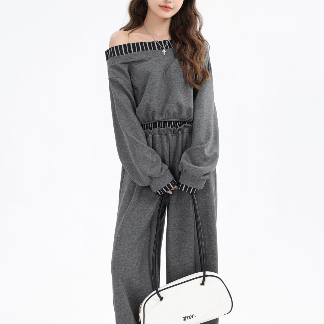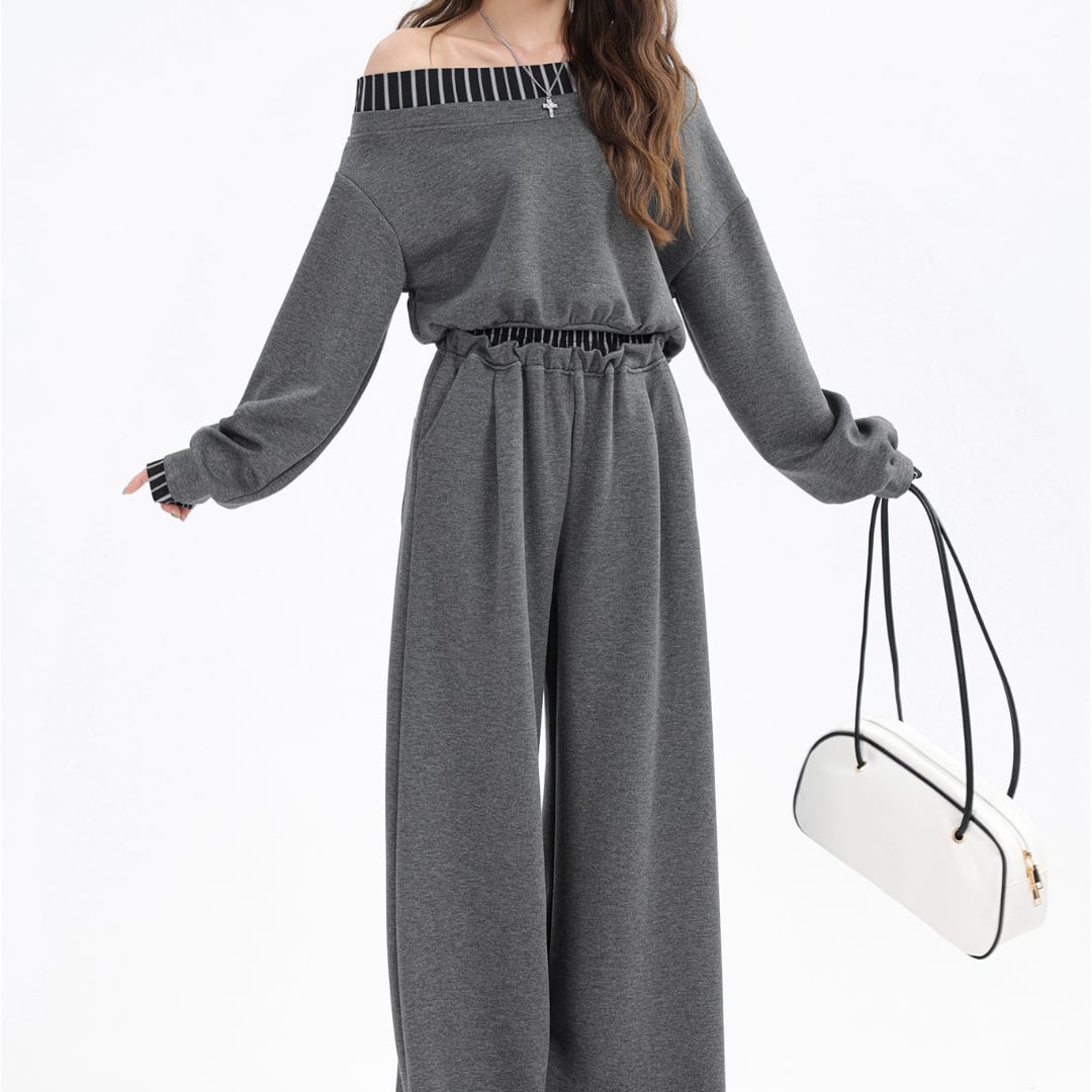 ■商品説明 リラックス感と洗練された雰囲気を兼ね備えた、トップスとワイドパンツのセットアップ。抜け感のあるシルエットが、大人のカジュアルスタイルを上品に演出します。 デコルテを美しく見せるオフショルダーデザインに、さりげないラインディテールを添えたトップスが印象的。ゆとりのある袖とコンパクトな丈感が、軽やかなバランスを生み出します。 パンツはゆったりとしたワイドシルエットで、縦のラインを強調しながら脚のラインを自然にカバー。ウエストはゴム仕様で、快適な着心地を叶えます。 デイリーコーデからカフェスタイル、休日のお出かけまで幅広く活躍。セットでの着用はもちろん、それぞれ単品でも着回しを楽しめる大人のためのセットアップです。 ■素材 表地:なし 裏地:なし ■カラー ダークグレー スカイブルー ブラック ■サイズ 【トップス】 S:着丈38cm / 肩幅55cm / 胸囲98cm / 袖丈55cm M:着丈39cm / 肩幅56cm / 胸囲102cm / 袖丈56cm L:着丈40cm / 肩幅57cm / 胸囲106cm / 袖丈57cm 【パンツ】 S:着丈101cm / ウエスト62cm M:着丈102cm / ウエスト66cm L:着丈103cm / ウエスト70cm ※平置き採寸のため 1〜3cm の誤差があります。 ーーーーーーーーーーーーーーーーーーーーーーーーーーー 【注意事項】 ▪当店ではお求めやすい価格で提供することを心がけ、経費削減として海外倉庫を利用しています。 そのため、お取り寄せ商品は14〜30営業日前後いただく場合がございます。 ▪︎送料は北海道・沖縄・離島以外1000円、北海道・沖縄・離島は1500円頂戴しております。 ▪︎お買い上げ10,000円以上の場合、送料は無料です。 ▪︎こちらは海外製造の商品です。日本基準ではございませんので、作りがあまい場合がございます。 ▪︎お手持ちのPCやスマートフォンの画面により商品の色に若干の差がございます。 ▪︎イメージの違いやサイズ交換等、お客様の都合による交換、返品の対応はできかねます。 詳細は『ご購入前に必ずお読みください』を確認のうえご購入をお願いします。 https://www.amoratokyo.jp/blog/2023/11/01/011701