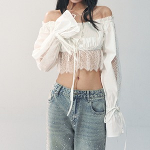 レースオフショルダーショートブラウス A24