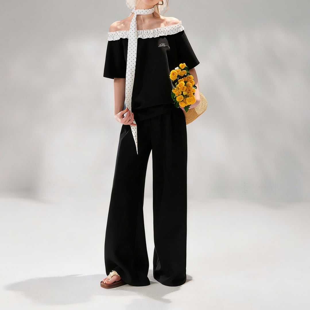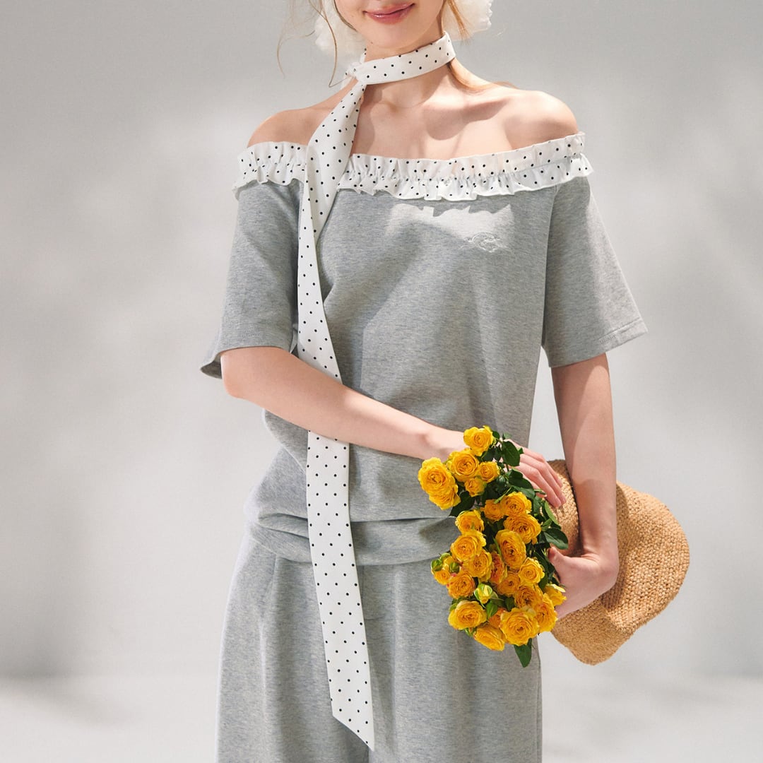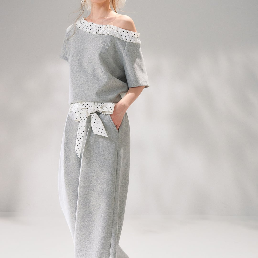 ■商品説明 洗練された抜け感を纏う、大人のためのセットアップ。トップスとパンツのバランスが美しく、日常にさりげない華やぎを添える一着です。 ワンショルダーデザインにあしらわれたフリルが、デコルテを優雅に演出。配色のドットディテールがアクセントとなり、シンプルながらも印象的なスタイルを完成させます。 程よくゆとりのあるシルエットとストレートラインのパンツが、身体のラインを自然にカバー。縦のラインを強調し、すっきりとしたスタイルアップ効果を叶えます。 デイリーからお出かけまで幅広く活躍し、単品使いでも着回しが可能。軽やかさと上品さを兼ね備えた、洗練されたセットアップです。 ■素材 表地:綿48.6% ポリエステル47.0% ポリウレタン4.4% 裏地:なし ■カラー グレー ブラック ■サイズ 【トップス】 S:着丈56cm / 胸囲114cm / 袖丈24cm M:着丈57cm / 胸囲118cm / 袖丈25cm L:着丈58cm / 胸囲122cm / 袖丈26cm 【パンツ】 XS:着丈101cm / ウエスト62cm S:着丈103cm / ウエスト66cm M:着丈104cm / ウエスト70cm L:着丈105cm / ウエスト74cm ※平置き採寸のため 1〜3cm の誤差があります。 ーーーーーーーーーーーーーーーーーーーーーーーーーーー 【注意事項】 ▪当店ではお求めやすい価格で提供することを心がけ、経費削減として海外倉庫を利用しています。 そのため、お取り寄せ商品は14〜30営業日前後いただく場合がございます。 ▪︎送料は北海道・沖縄・離島以外1000円、北海道・沖縄・離島は1500円頂戴しております。 ▪︎お買い上げ10,000円以上の場合、送料は無料です。 ▪︎こちらは海外製造の商品です。日本基準ではございませんので、作りがあまい場合がございます。 ▪︎お手持ちのPCやスマートフォンの画面により商品の色に若干の差がございます。 ▪︎イメージの違いやサイズ交換等、お客様の都合による交換、返品の対応はできかねます。 詳細は『ご購入前に必ずお読みください』を確認のうえご購入をお願いします。 https://www.amoratokyo.jp/blog/2023/11/01/011701