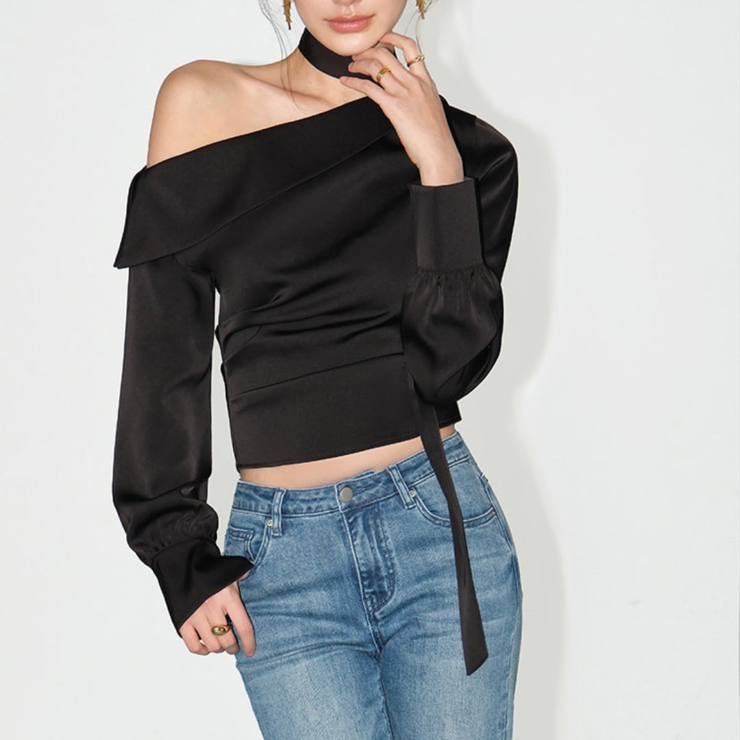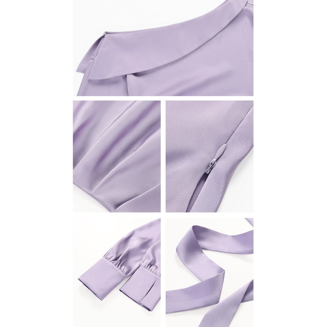 ■商品説明 優雅な光沢感が魅力の、アシンメトリーデザインブラウス。洗練されたディテールが、大人の女性らしい気品を引き立てます。 ワンショルダー風のネックラインと流れるようなドレープが、立体的で美しいシルエットを演出。首元に添えられたリボンが、控えめながらも印象的なアクセントに。 程よく身体に沿うラインと柔らかな素材感により、女性らしい曲線を美しく引き立てつつ、自然なフィット感を実現。上半身をすっきりと見せ、洗練された印象へ導きます。 デイリーからお出かけ、特別なシーンまで幅広く活躍し、シンプルなボトムと合わせるだけで上品なスタイリングが完成します。 ■素材 表地:ポリエステル99% 裏地:なし ■カラー ブラック パープル ■サイズ S:着丈48cm / 胸囲84cm / 裾周り81cm / 袖丈64cm / 袖口22cm M:着丈49.5cm / 胸囲88cm / 裾周り85cm / 袖丈65cm / 袖口23cm L:着丈51cm / 胸囲92cm / 裾周り89cm / 袖丈66cm / 袖口24cm ※平置き採寸のため 1〜3cm の誤差があります。 ーーーーーーーーーーーーーーーーーーーーーーーーーーー 【注意事項】 ▪当店ではお求めやすい価格で提供することを心がけ、経費削減として海外倉庫を利用しています。 そのため、お取り寄せ商品は14〜30営業日前後いただく場合がございます。 ▪︎送料は北海道・沖縄・離島以外1000円、北海道・沖縄・離島は1500円頂戴しております。 ▪︎お買い上げ10,000円以上の場合、送料は無料です。 ▪︎こちらは海外製造の商品です。日本基準ではございませんので、作りがあまい場合がございます。 ▪︎お手持ちのPCやスマートフォンの画面により商品の色に若干の差がございます。 ▪︎イメージの違いやサイズ交換等、お客様の都合による交換、返品の対応はできかねます。 詳細は『ご購入前に必ずお読みください』を確認のうえご購入をお願いします。 https://www.amoratokyo.jp/blog/2023/11/01/011701