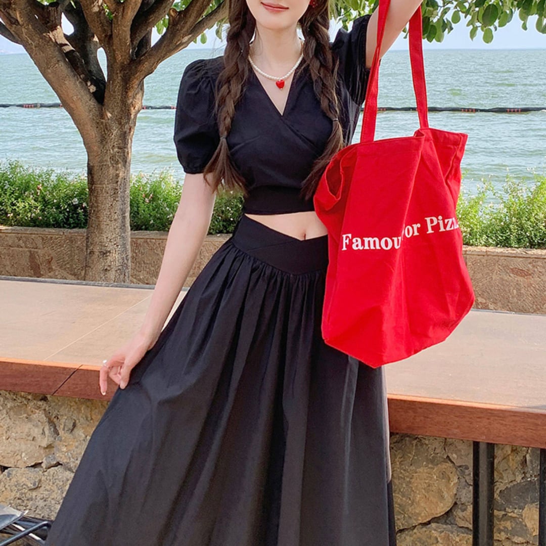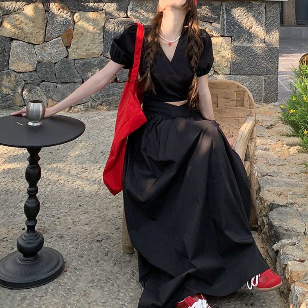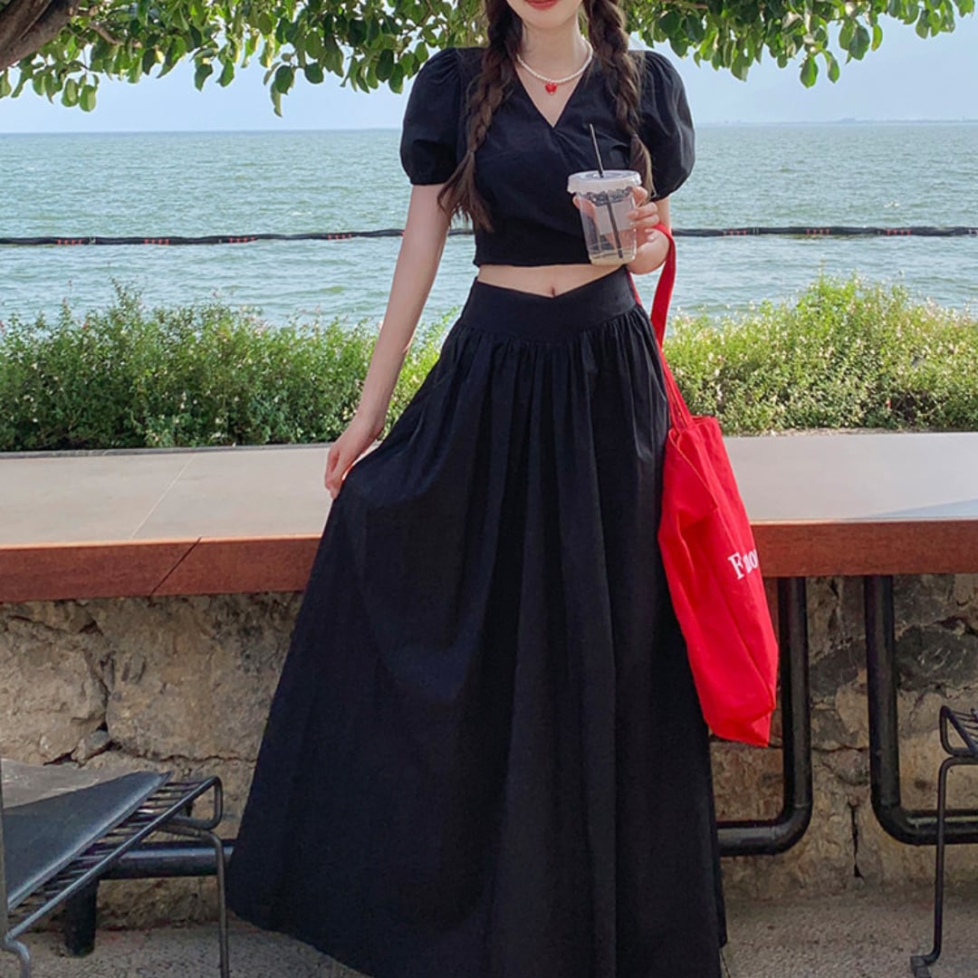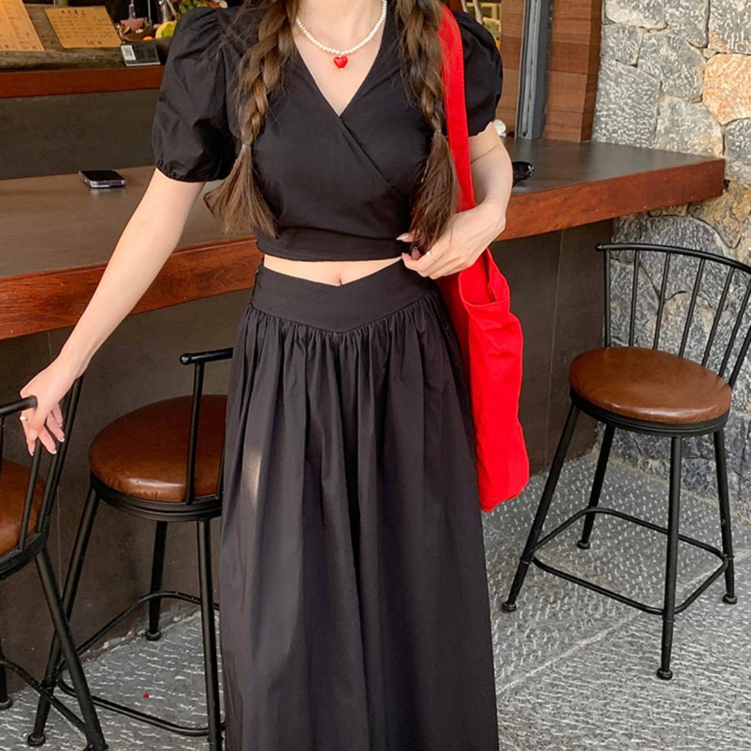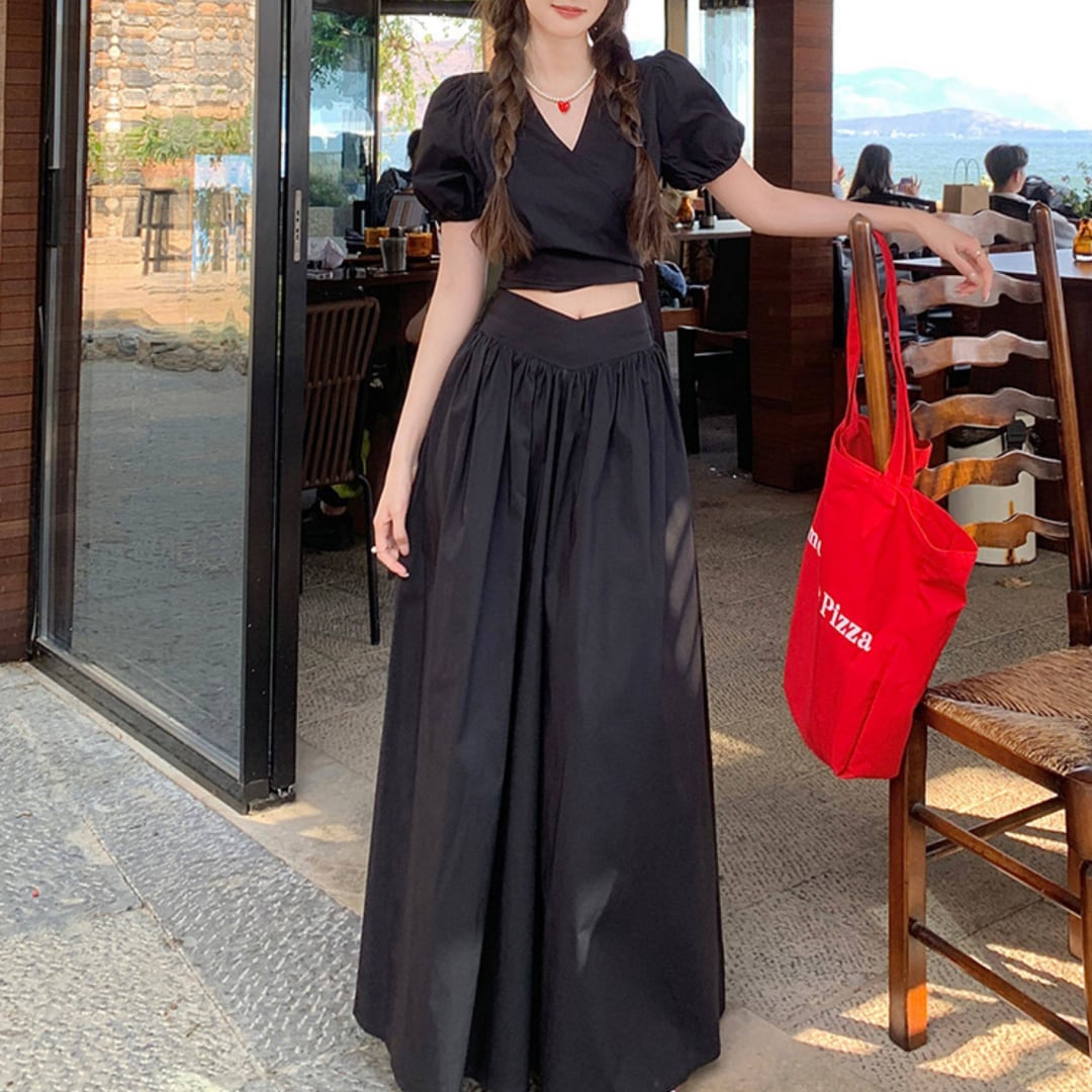 女性らしさを引き立てるパフスリーブトップスとロングスカートのセットアップ。単品でも着回し可能な、洗練されたスタイリングを叶える一着です。