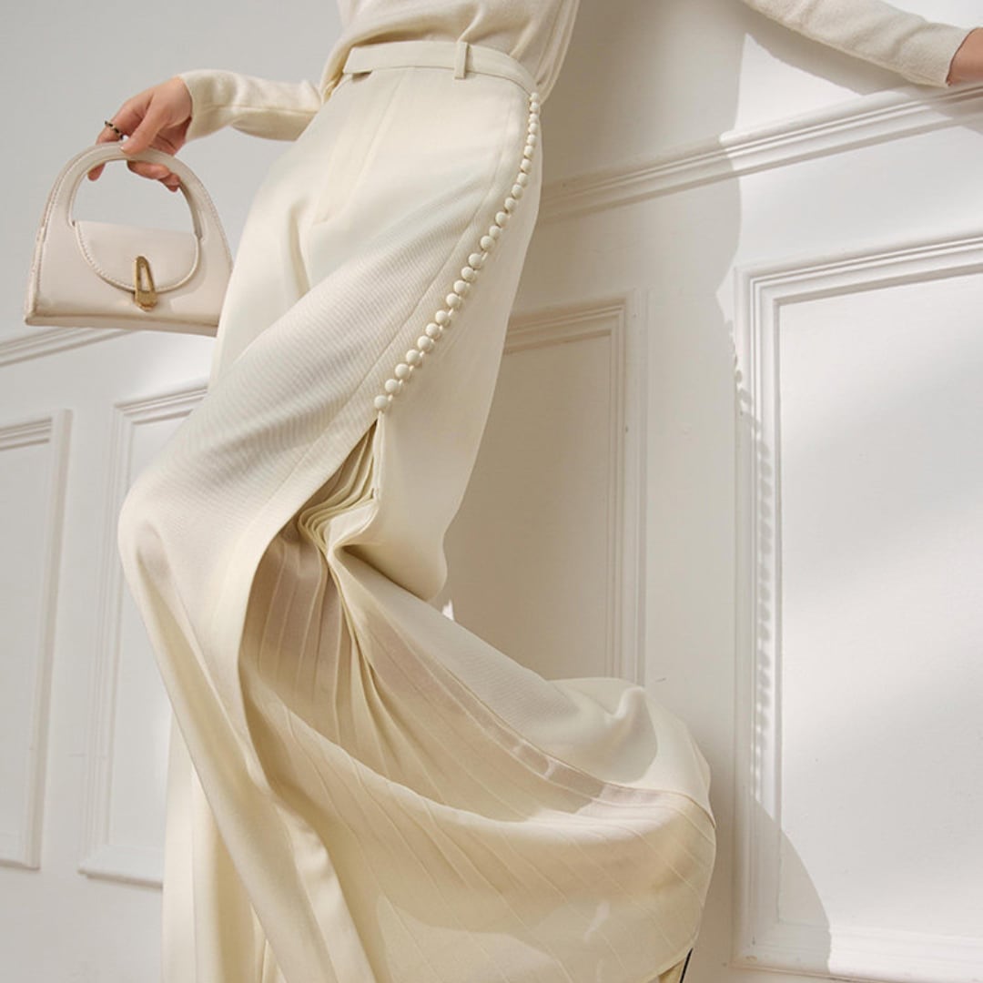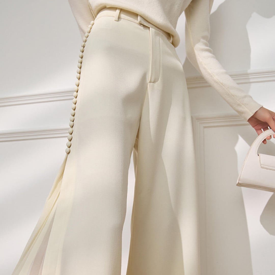 ■商品説明 洗練された印象を纏う、サイドディテールが印象的なワイドパンツ。上品さと個性を兼ね備えた、大人のための一着です。 サイドにあしらわれたボタンデザインと、軽やかに揺れるプリーツ切替が特徴。歩くたびに動きが生まれ、シンプルながらも印象的なシルエットを演出します。 ハイウエスト設計により腰位置を高く見せ、脚のラインを美しく引き伸ばす効果も。ゆとりのあるワイドシルエットが、気になる部分を自然にカバーします。 デイリーからきれいめなシーンまで幅広く活躍し、スタイリング次第で様々な表情を楽しめる一着です。 ■素材 表地:その他 裏地:なし ■カラー アイボリー ■サイズ S:着丈103cm / ウエスト64cm / ヒップ92cm M:着丈104cm / ウエスト68cm / ヒップ96cm L:着丈105cm / ウエスト72cm / ヒップ100cm XL:着丈106cm / ウエスト76cm / ヒップ104cm ※平置き採寸のため 1〜3cm の誤差があります。 ーーーーーーーーーーーーーーーーーーーーーーーーーーー 【注意事項】 ▪当店ではお求めやすい価格で提供することを心がけ、経費削減として海外倉庫を利用しています。 そのため、お取り寄せ商品は14〜30営業日前後いただく場合がございます。 ▪︎送料は北海道・沖縄・離島以外1000円、北海道・沖縄・離島は1500円頂戴しております。 ▪︎お買い上げ10,000円以上の場合、送料は無料です。 ▪︎こちらは海外製造の商品です。日本基準ではございませんので、作りがあまい場合がございます。 ▪︎お手持ちのPCやスマートフォンの画面により商品の色に若干の差がございます。 ▪︎イメージの違いやサイズ交換等、お客様の都合による交換、返品の対応はできかねます。 詳細は『ご購入前に必ずお読みください』を確認のうえご購入をお願いします。 https://www.amoratokyo.jp/blog/2023/11/01/011701