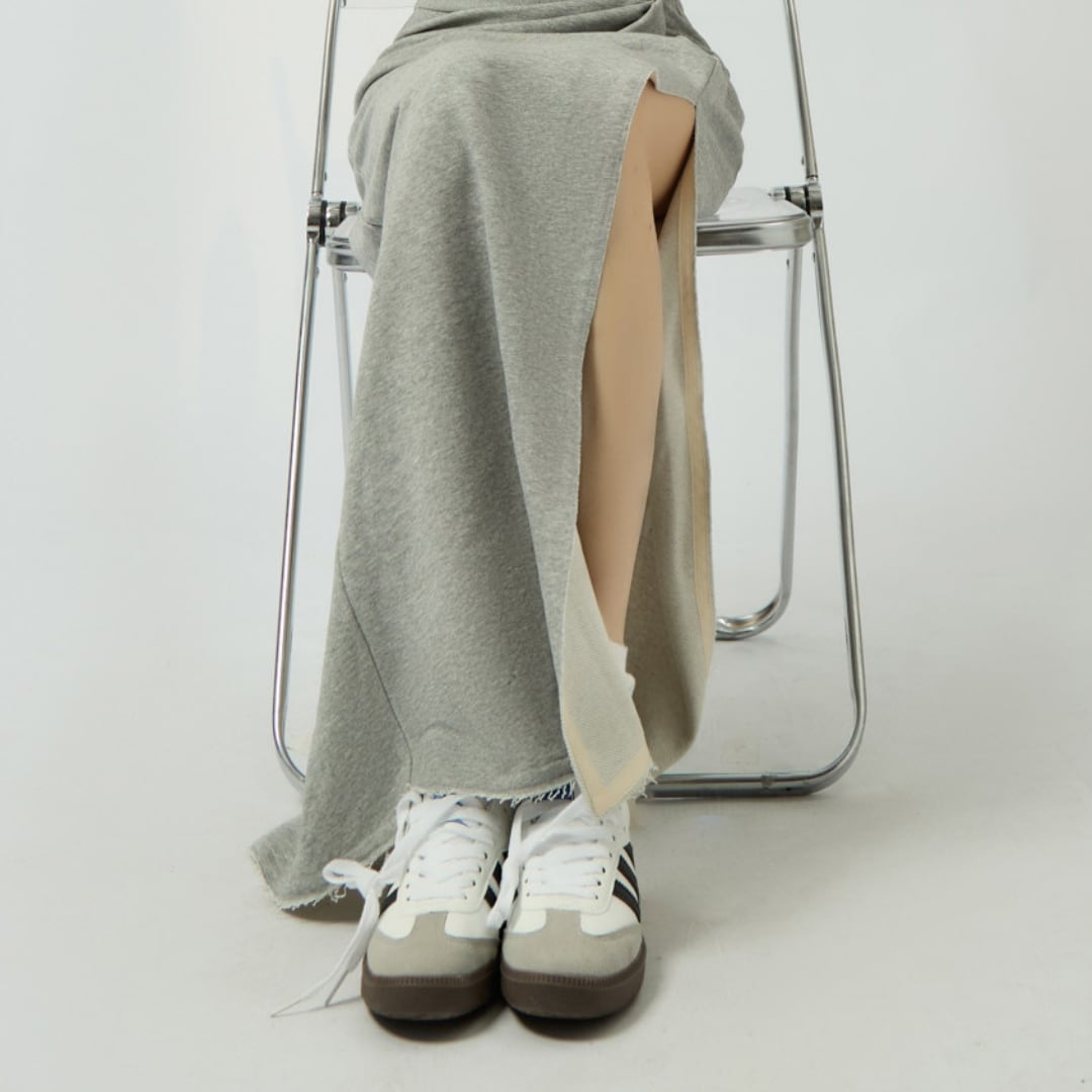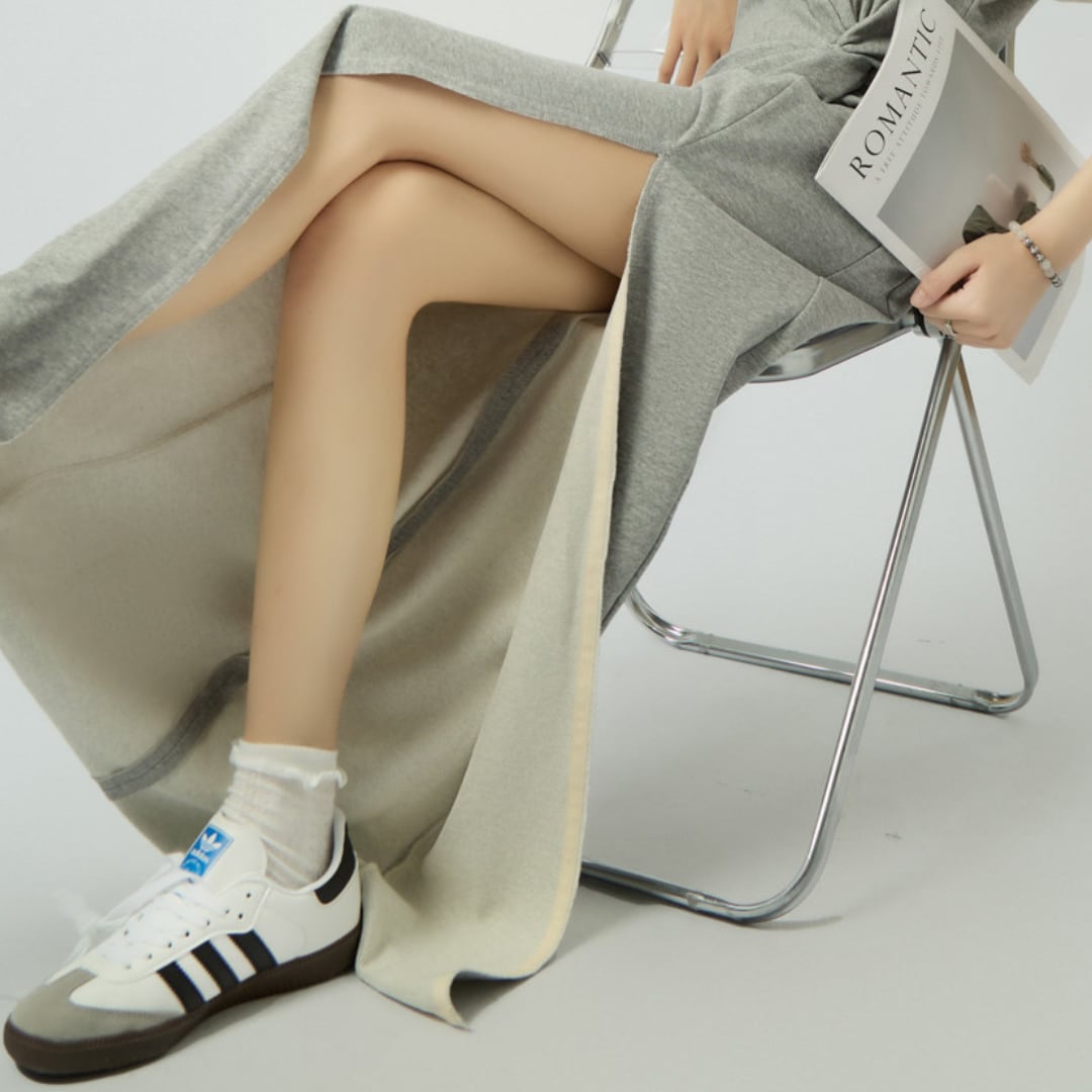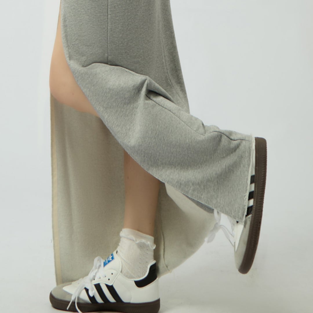 ハイウエスト位置のデザインが脚長効果をもたらし、縦のラインを強調。スリットが軽やかな動きを生み、すっきりとしたシルエットへ導きます。