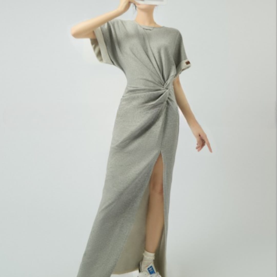 ウエストドレープスリットロングワンピース A85