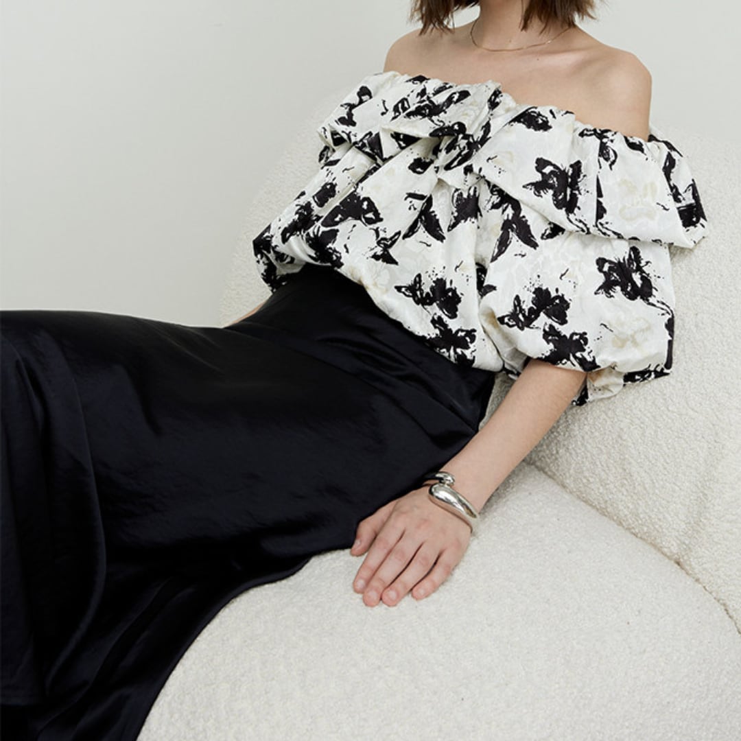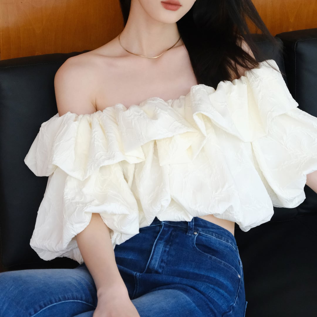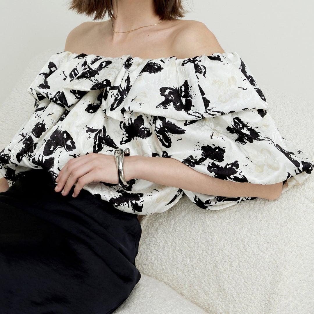 ■商品説明 立体的なフリルが印象的な、オフショルダーデザインのブラウス。無地とアートプリントの異なる表情が揃い、装いに合わせて選べる一着です。 デコルテを美しく見せるオフショルダーに、贅沢に重ねたフリルが華やかさを添えます。無地は洗練されたミニマルな印象に、プリントは装いに奥行きをもたらすアクセントとして映えます。 ゆとりのあるシルエットが身体のラインをやさしく包み込み、自然な体型カバーを実現。コンパクトな丈感が全体のバランスを整え、すっきりとした着こなしへ導きます。 日常のスタイリングからお出かけシーンまで幅広く活躍し、ボトム次第で印象を変えられる、着回し力の高い一着です。 ■素材 表地:コットン82% ポリエステル18% 裏地:ポリエステル100% ■カラー プリント ベージュ ブラック ■サイズ XS:着丈41cm / 袖丈25cm / 胸囲108cm S:着丈42cm / 袖丈26cm / 胸囲112cm M:着丈43cm / 袖丈27cm / 胸囲116cm L:着丈44cm / 袖丈28cm / 胸囲120cm ※平置き採寸のため 1〜3cm の誤差があります。 ーーーーーーーーーーーーーーーーーーーーーーーーーーー 【注意事項】 ▪当店ではお求めやすい価格で提供することを心がけ、経費削減として海外倉庫を利用しています。 そのため、お取り寄せ商品は14〜30営業日前後いただく場合がございます。 ▪︎送料は北海道・沖縄・離島以外1000円、北海道・沖縄・離島は1500円頂戴しております。 ▪︎お買い上げ10,000円以上の場合、送料は無料です。 ▪︎こちらは海外製造の商品です。日本基準ではございませんので、作りがあまい場合がございます。 ▪︎お手持ちのPCやスマートフォンの画面により商品の色に若干の差がございます。 ▪︎イメージの違いやサイズ交換等、お客様の都合による交換、返品の対応はできかねます。 詳細は『ご購入前に必ずお読みください』を確認のうえご購入をお願いします。 https://www.amoratokyo.jp/blog/2023/11/01/011701